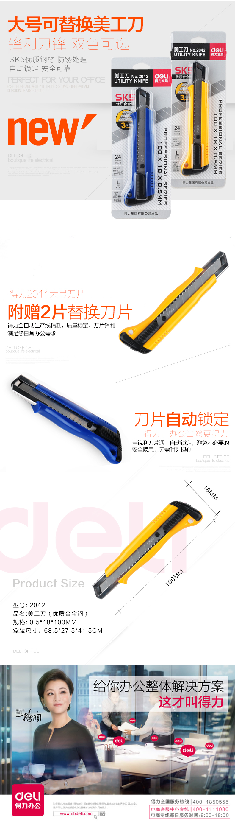 得力 小大号美工刀手动锁裁纸刀介刀裁剪手工裁纸刀工艺刀 切纸刀