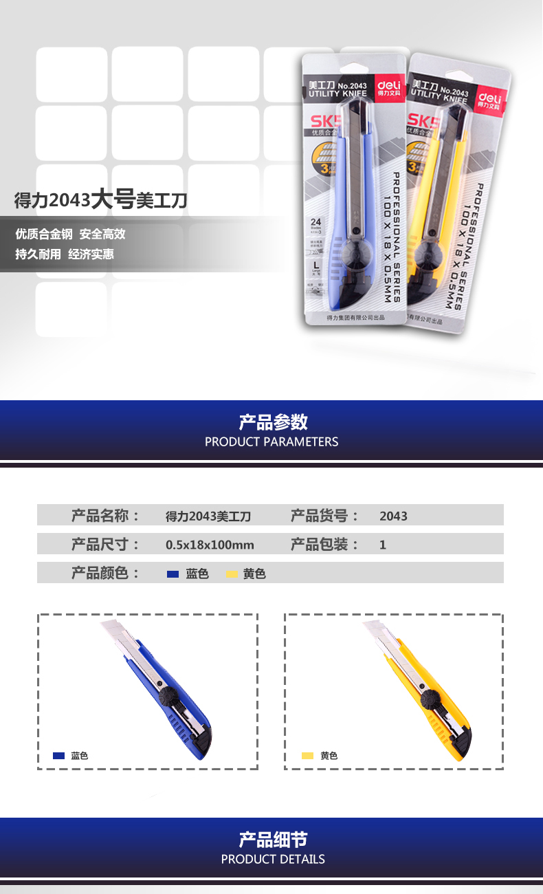 商品名称:得力 小大号美工刀手动锁裁纸刀介刀裁剪手工裁纸刀工艺刀 切纸刀