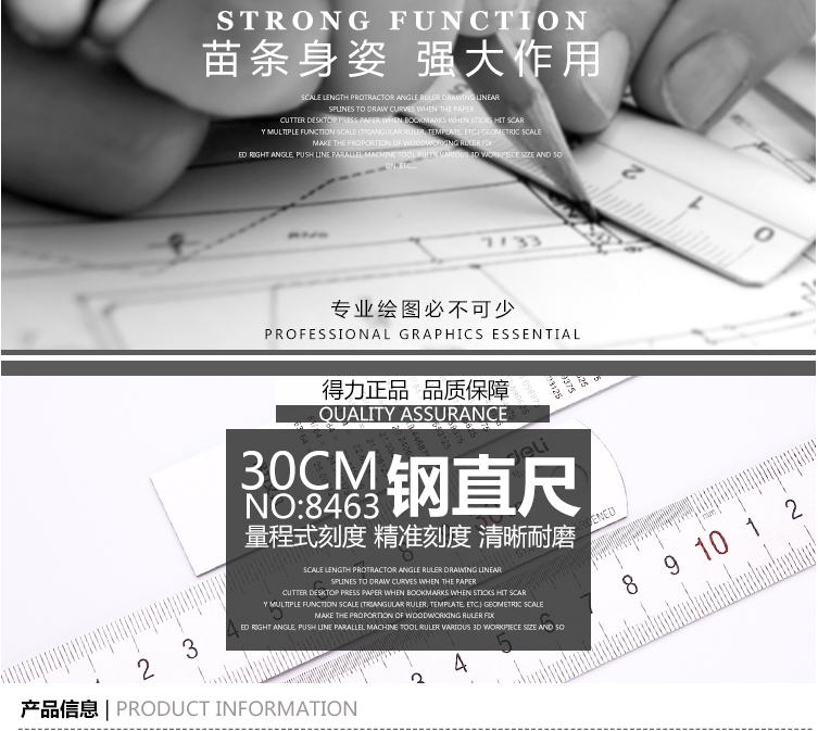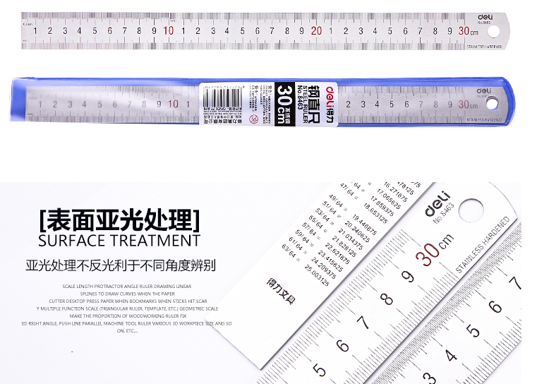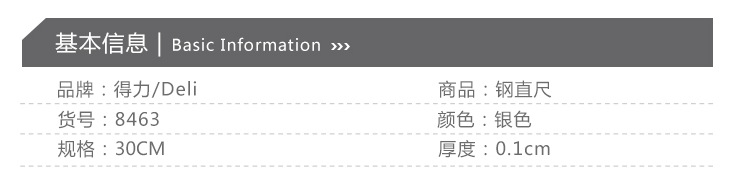 商品名称:得力 钢直尺8463不锈钢测量工具15/20/30/50/100厘米规格钢尺