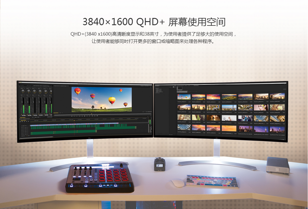 LG 38寸IPS超高清曲面专业显示器音响 38UC99-W