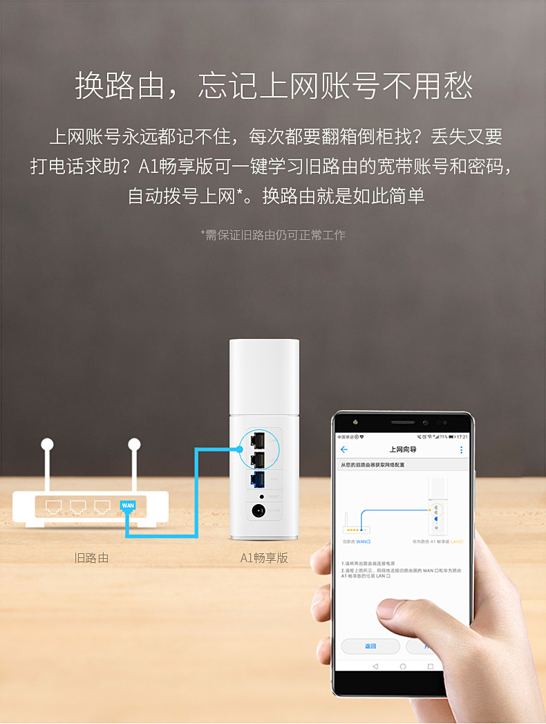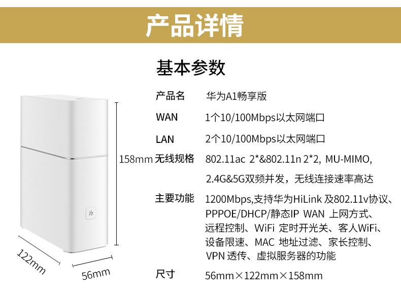 商品名称:华为 无线路由器1200M千兆光纤家用高速5G智能wifi穿墙王A1畅享版