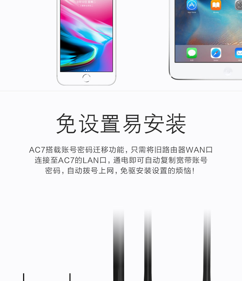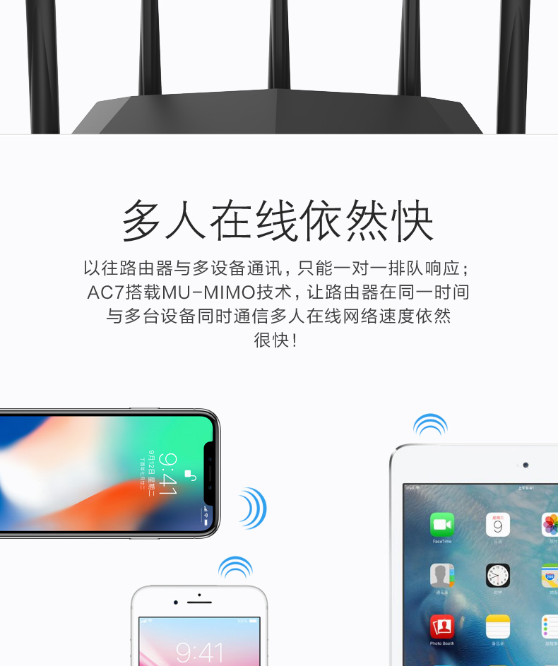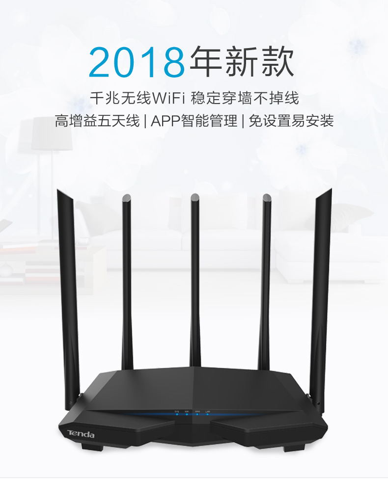 商品名称:Tenda/腾达 AC7 1200M 无线路由器 穿墙增强 5G双频 家用智能路由