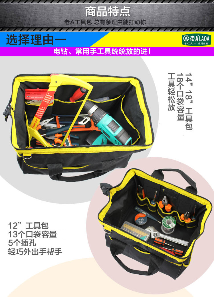 商品名称:老A 电工维修工具包 帆布售后背包 加厚手提单肩12/14/18寸大号 LA212817