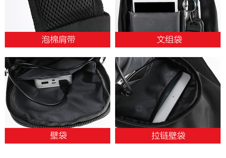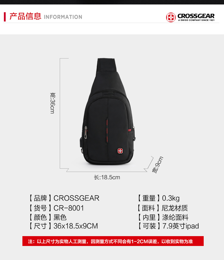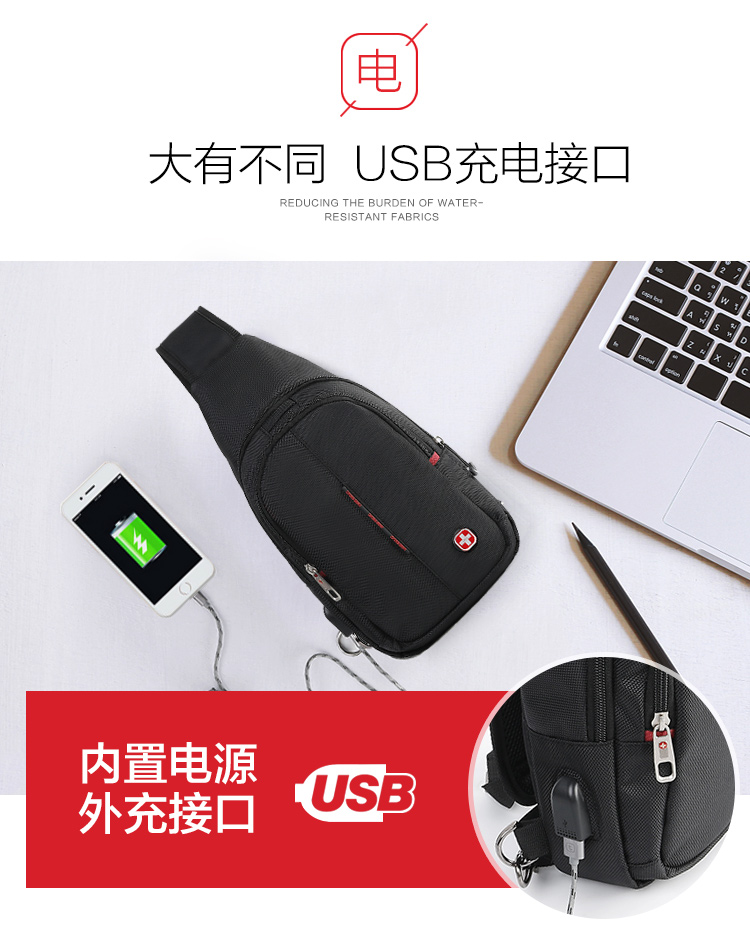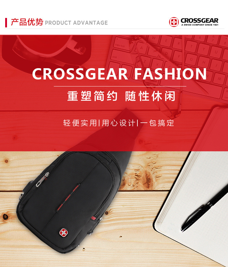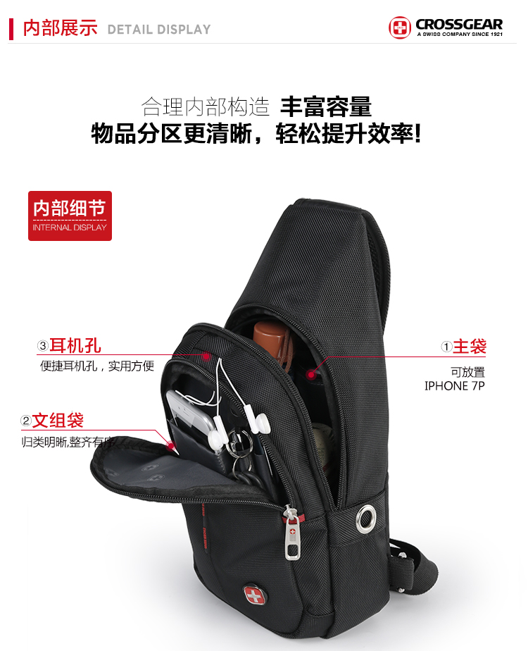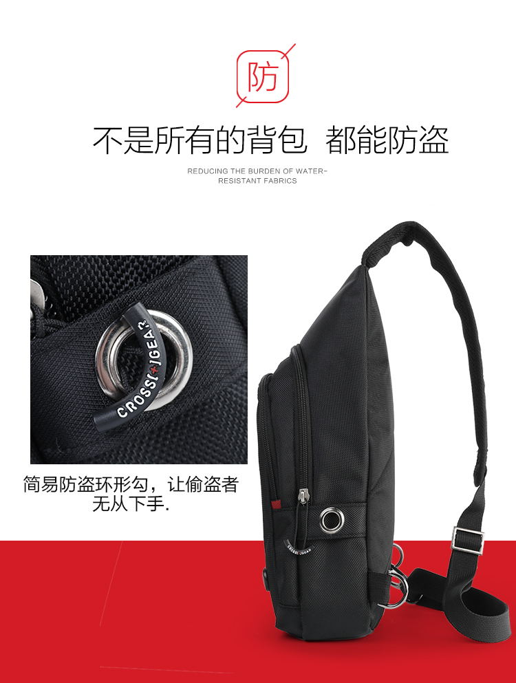 商品名称:CROSSGEAR 胸包腰包单肩斜挎包USB充电小背包 CR-8001