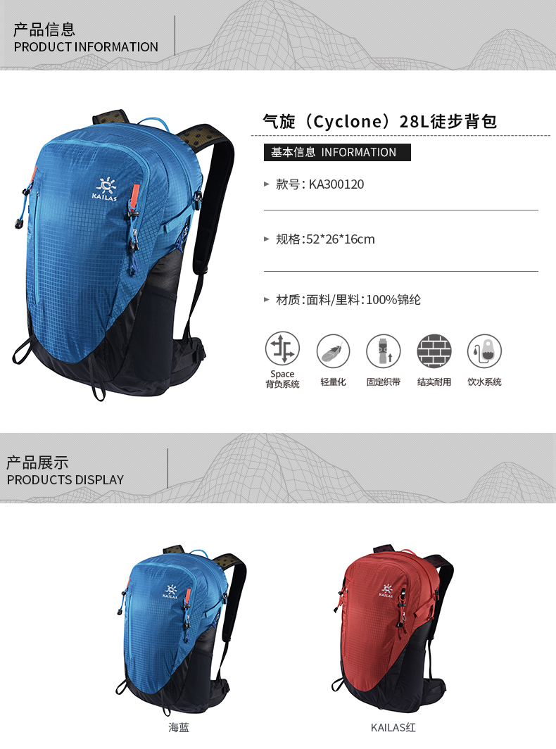 商品名称:Kailas/凯乐石 户外运动气旋28L徒步背包 KA300120