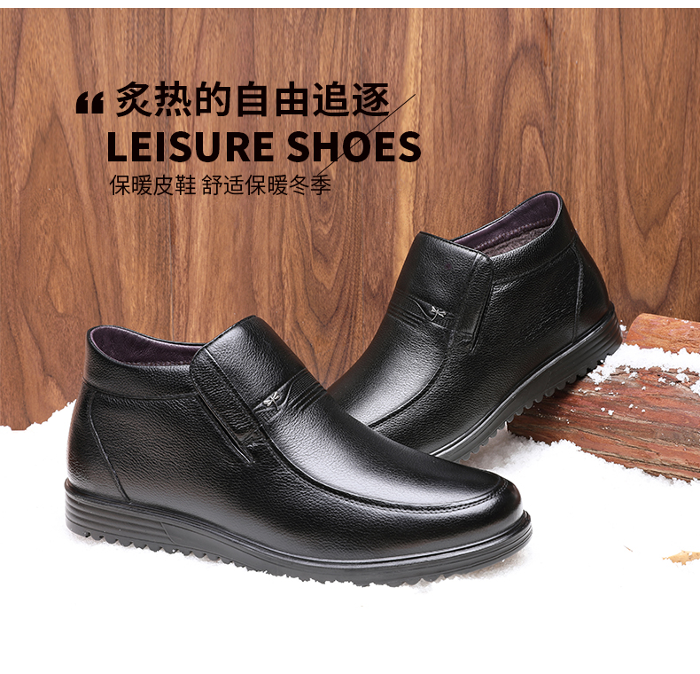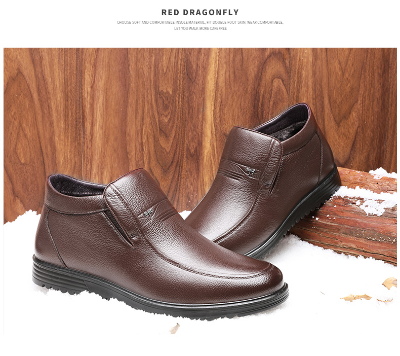 商品名称:红蜻蜓 真皮男棉鞋冬季新品保暖绒里中年爸爸棉鞋高帮牛皮鞋男