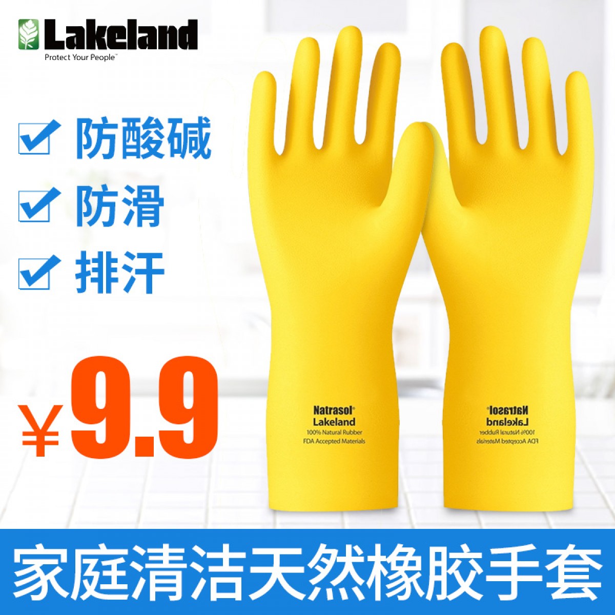 商品名称:雷克兰 手套耐酸碱劳保工业加厚手套天然橡胶手套厨房防化手套 ER18F