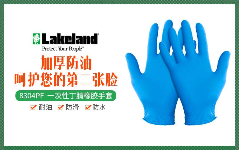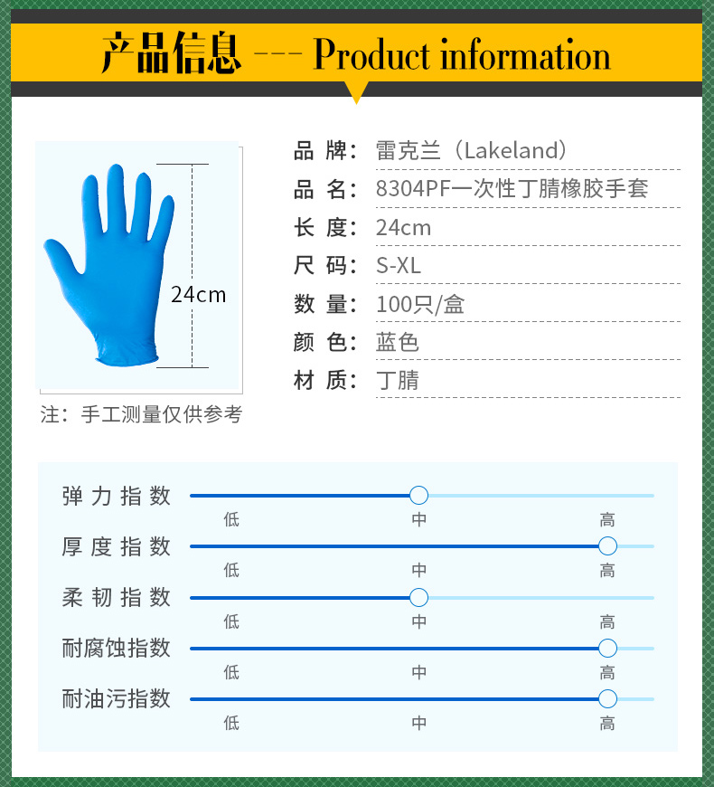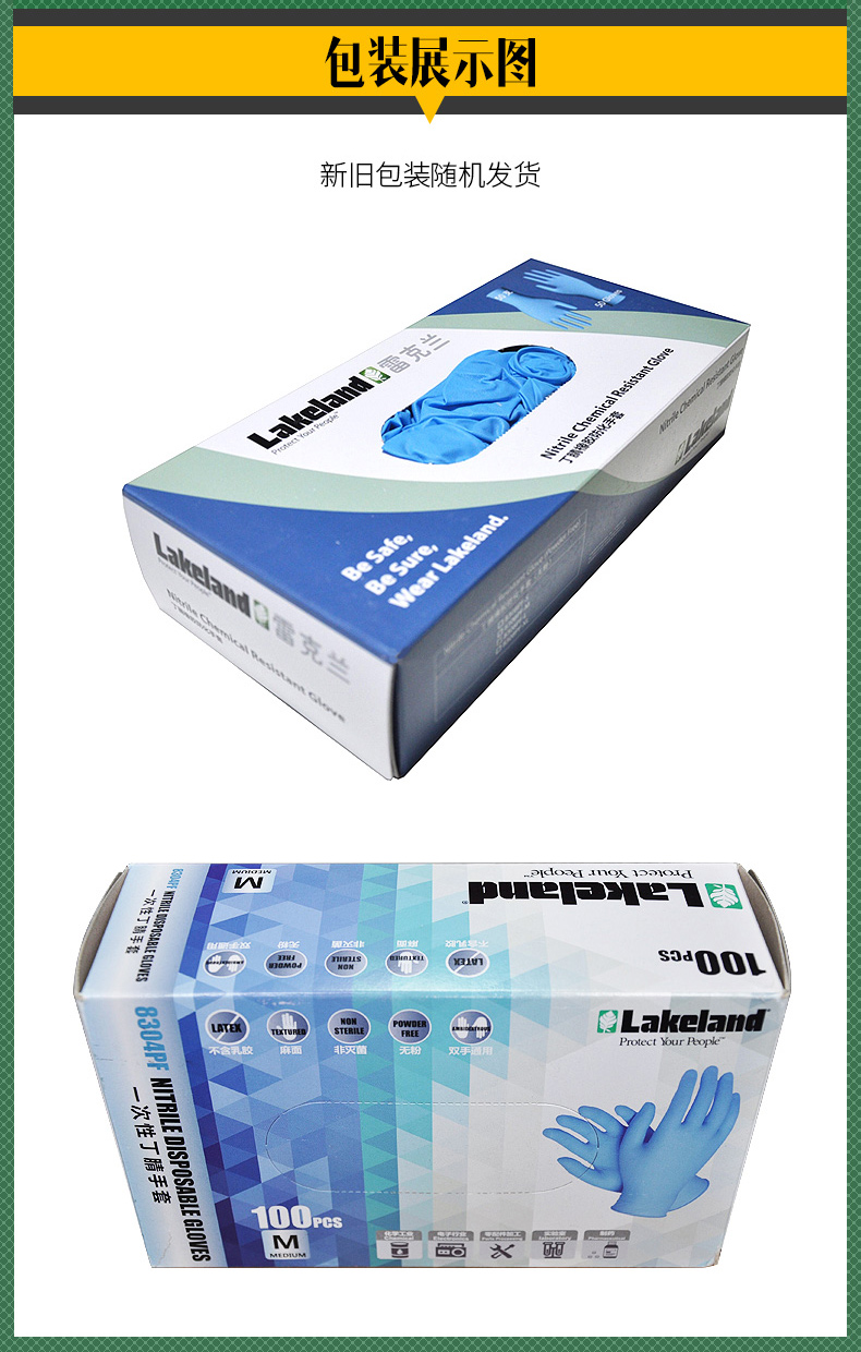 商品名称:雷克兰 一次性无粉橡胶劳保手套麻面加厚耐油耐酸碱 100只/盒 8304PF