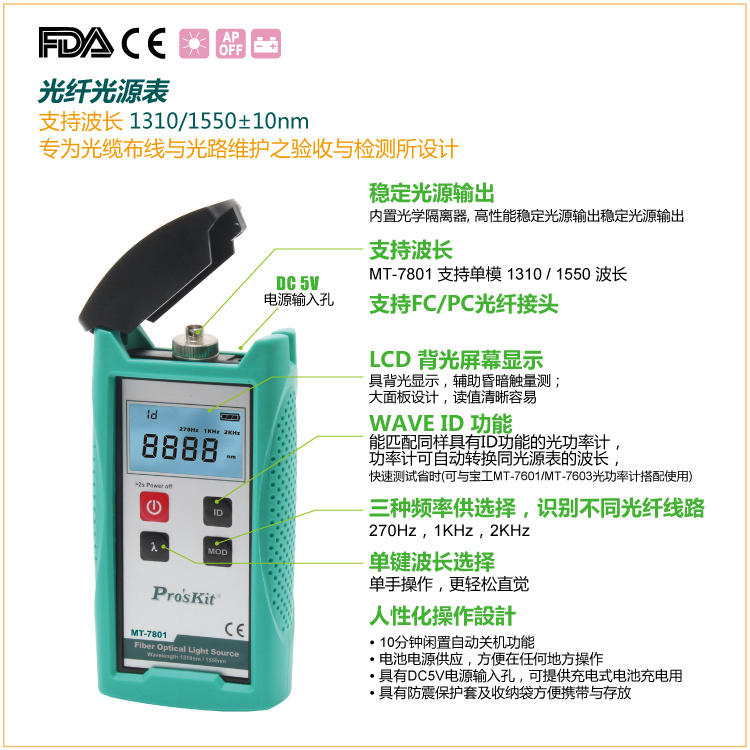 宝工 #39;skit 光纤光源测试表 光缆 光路测试表 MT-7801-FC
