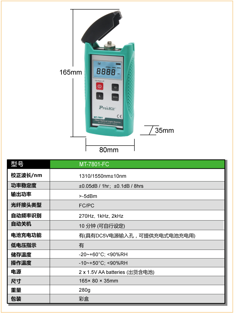 商品名称:宝工 #39;skit 光纤光源测试表 光缆 光路测试表 MT-7801-FC