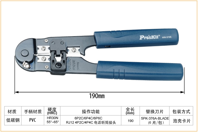 商品名称:宝工 808-376B 6P电话接头压线钳 电话水晶头压接钳
