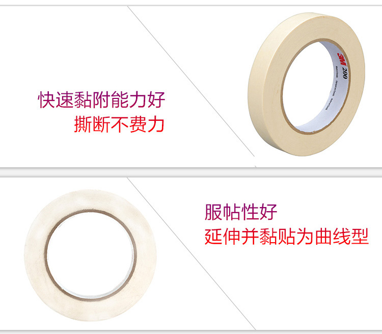 商品名称:3M 汽车喷涂无痕纸胶带 遮蔽带 美纹胶 耐中温93°C 200