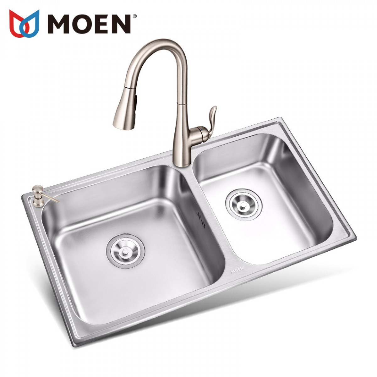 摩恩 304不锈钢加厚厨房水槽双槽套餐水龙头洗菜盆台下洗碗盆水池