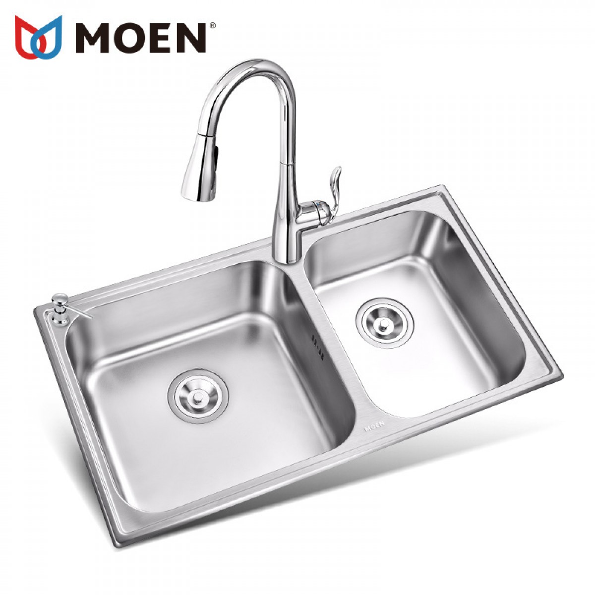 商品名称:摩恩 304不锈钢加厚厨房水槽双槽套餐水龙头洗菜盆台下洗碗盆水池