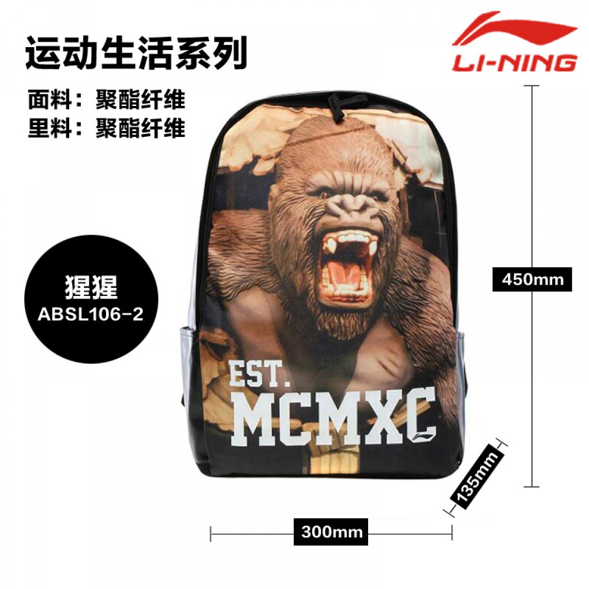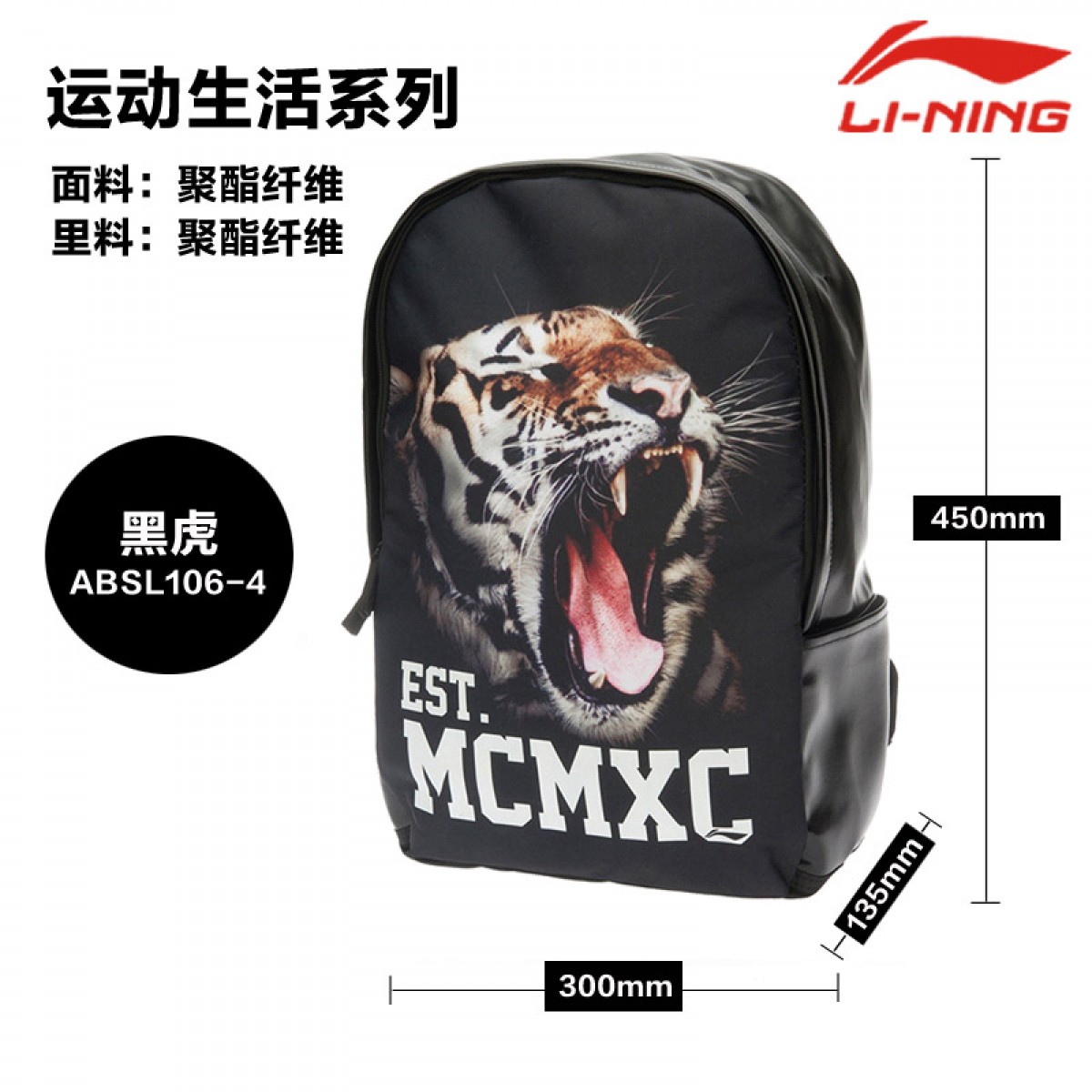 商品名称:李宁 背包中性双肩背包动物图案个性 ABSL106