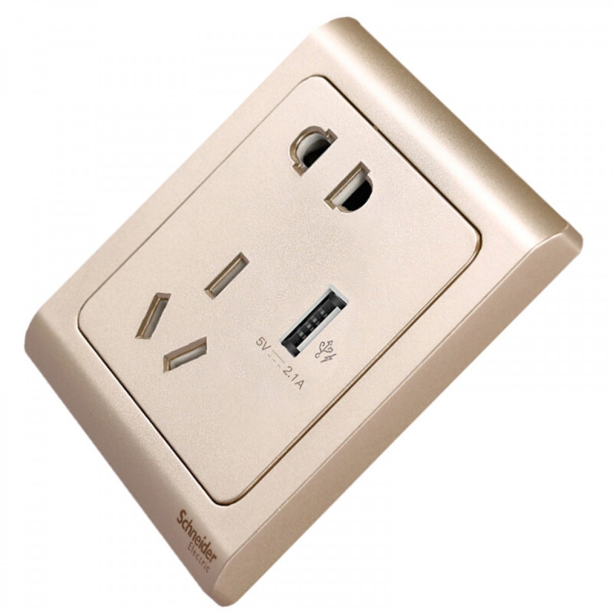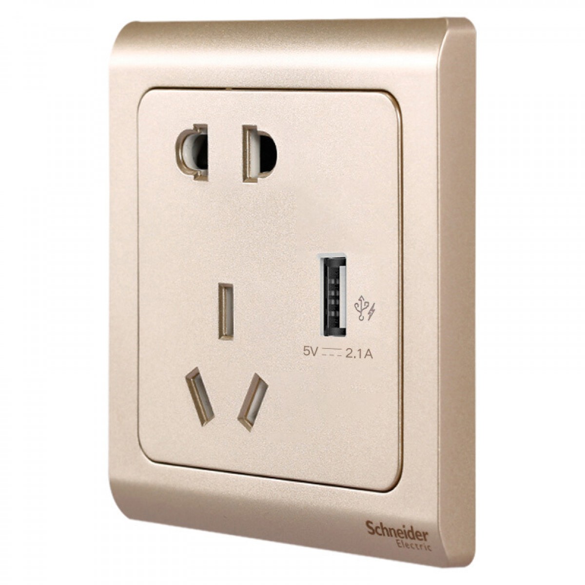商品名称:施耐德 开关插座面板轻逸金10A电源带开关插座 带2.1A USB插座