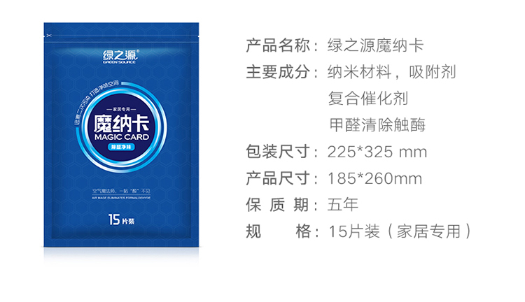 商品名称:绿之源 魔纳卡去除甲醛苯tvoc装修除异味新房家具祛味活性炭除醛卡