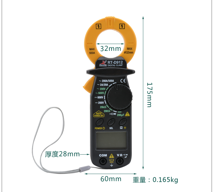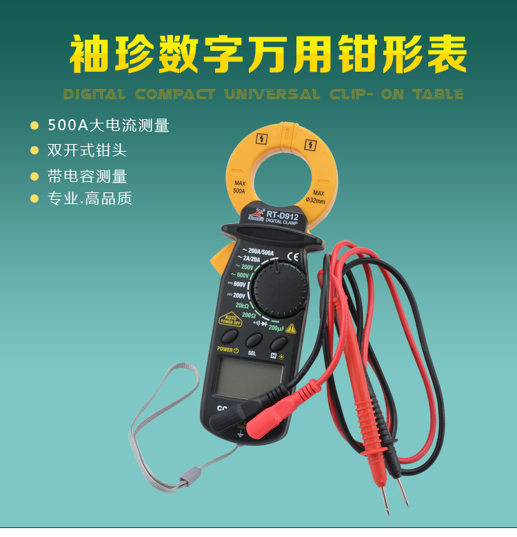 商品名称:飞鹿 袖珍数字万用钳形表 高档钳式数显万用表 万能表 RT-D912