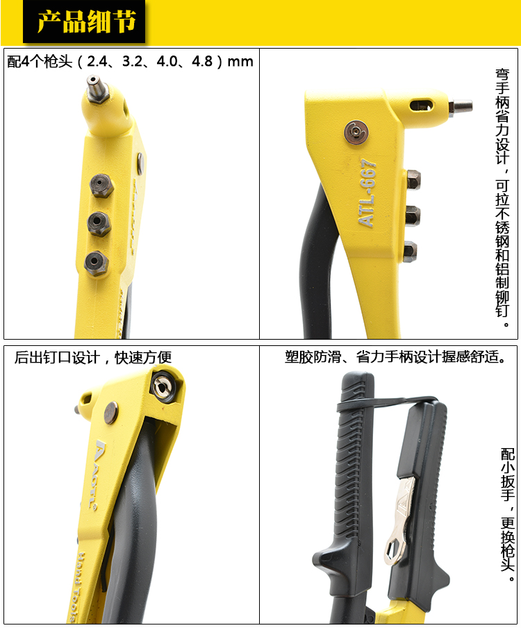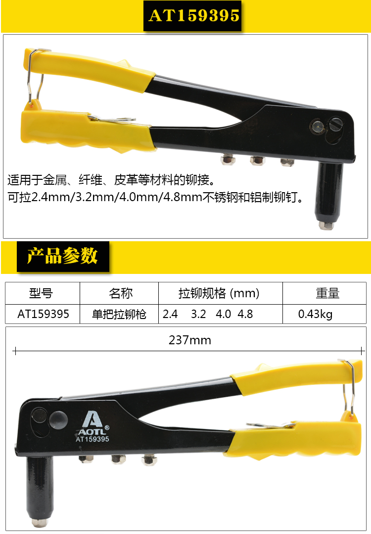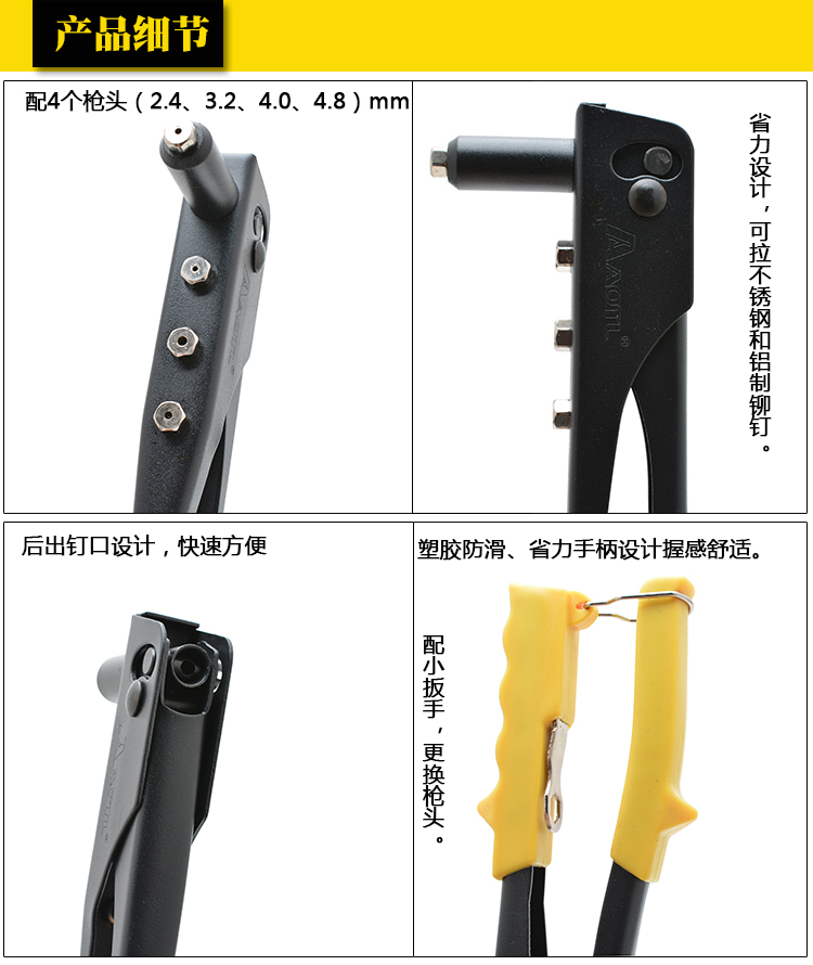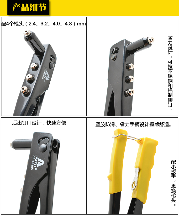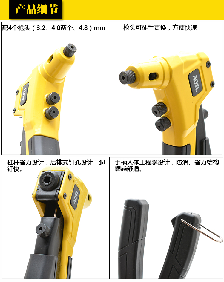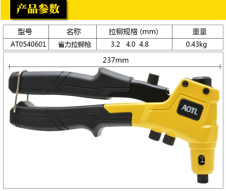 商品名称:Aotl/澳特利 手动拉铆枪 拉钉枪 铆钉枪 单手式拉钉器 铆钉紧固枪