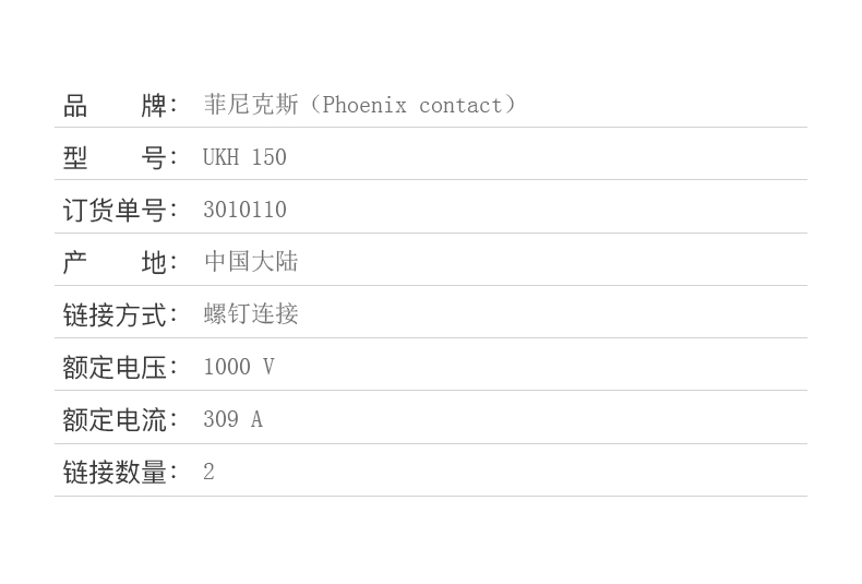 商品名称:菲尼克斯 接线端子螺钉连接150平方 UKH 150-3010110 1包起订