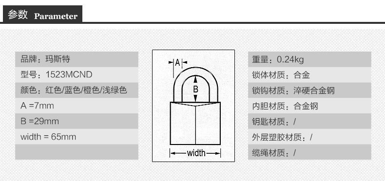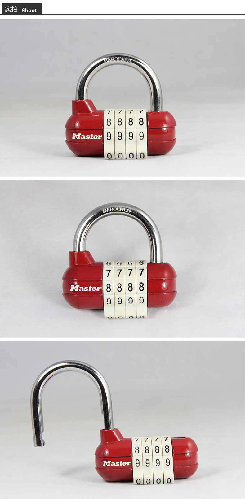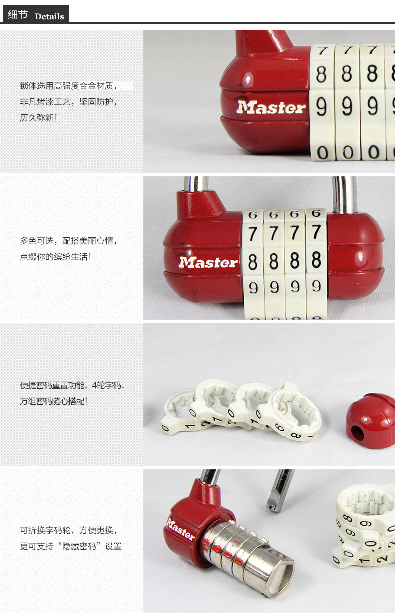 商品名称:玛斯特 4轮数字密码锁宿舍健身房柜子宿舍门锁挂锁