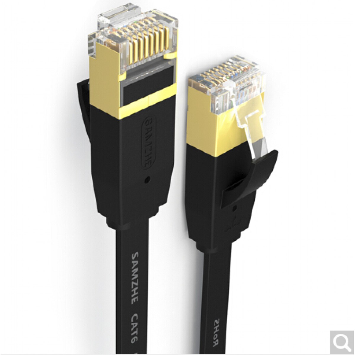 山泽(SAMZHE)6030PHS 六类扁平网线 无氧铜千兆镀金金属头高速电脑网线 cat6类超薄黑色 3米