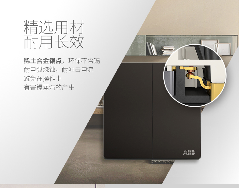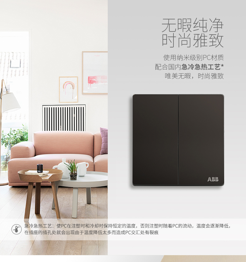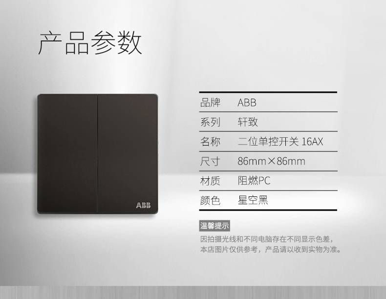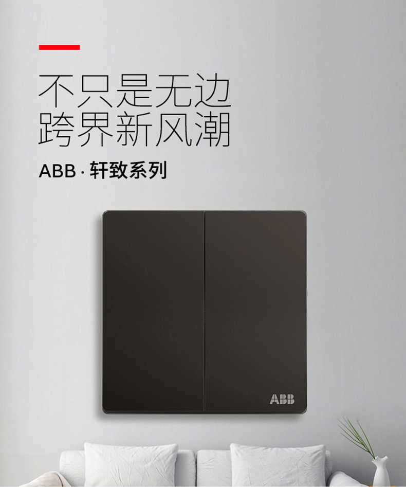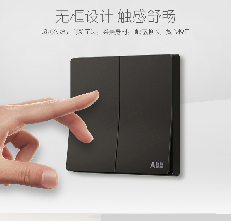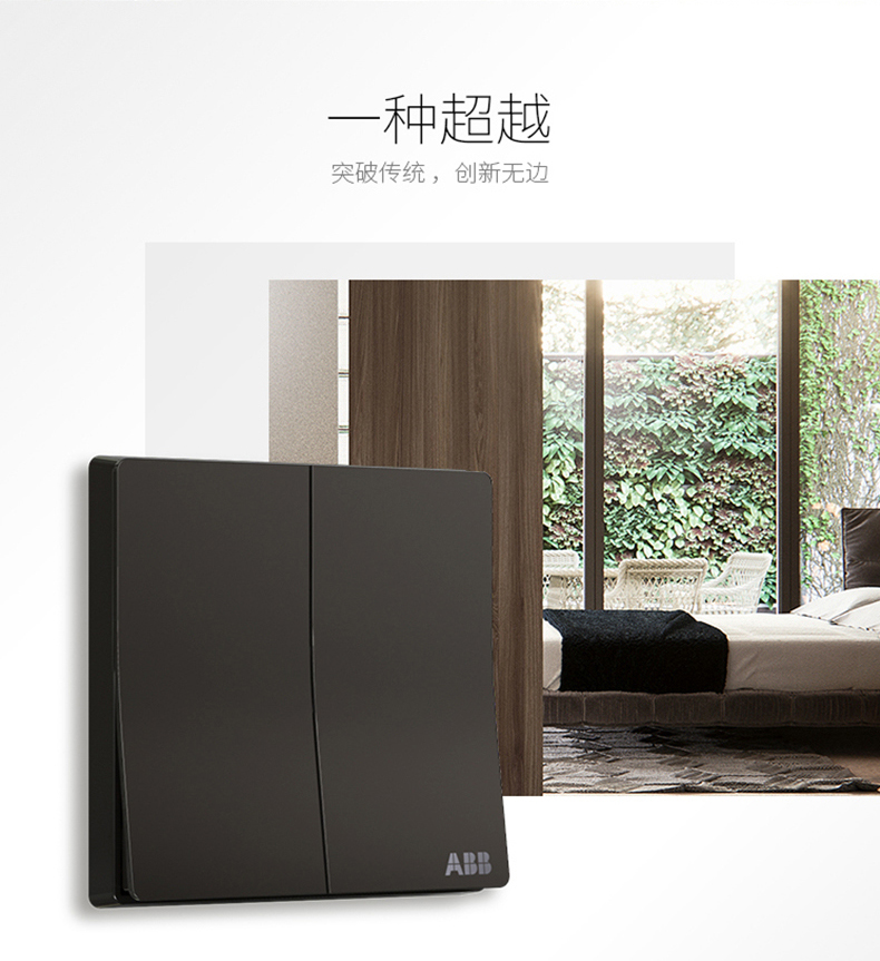 商品名称:ABB 开关插座 轩致无框 星空黑色 二位二开单控开关面板AF122-885