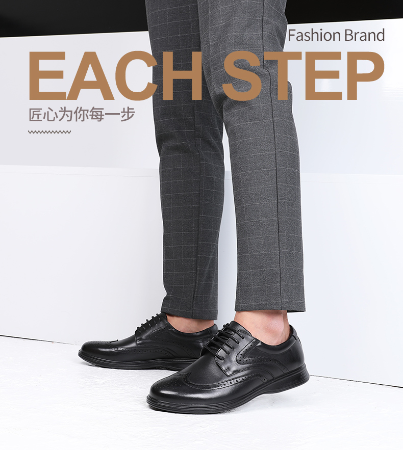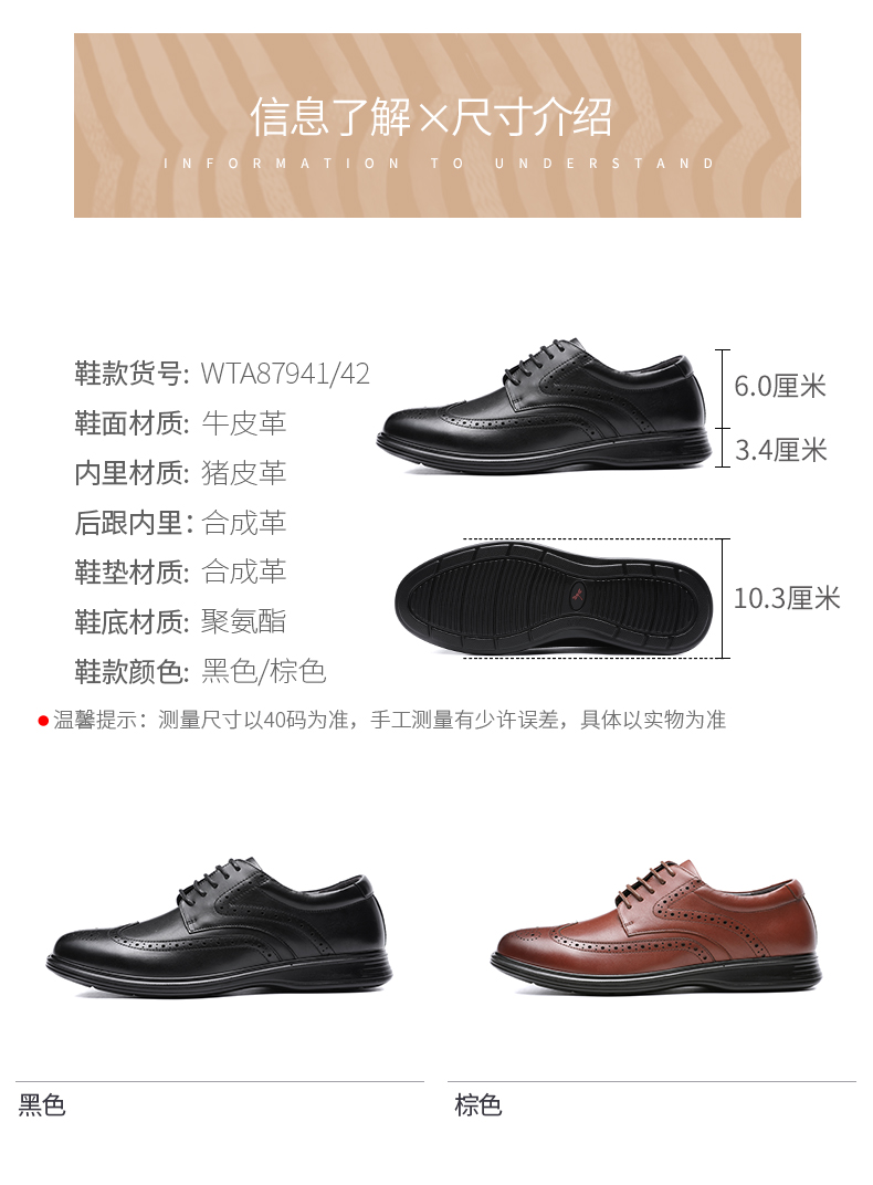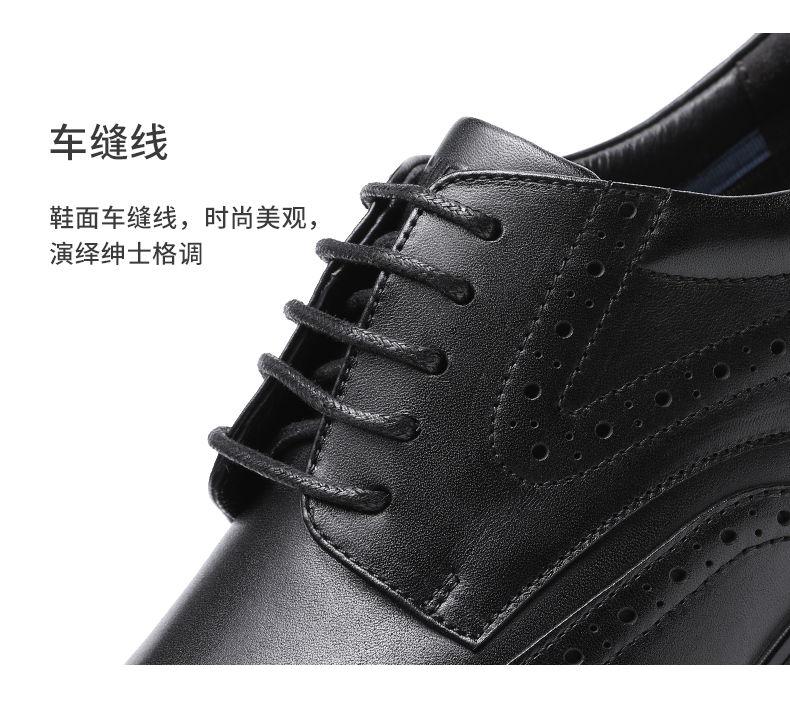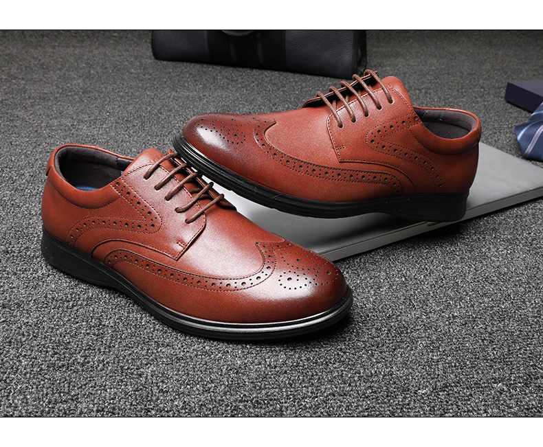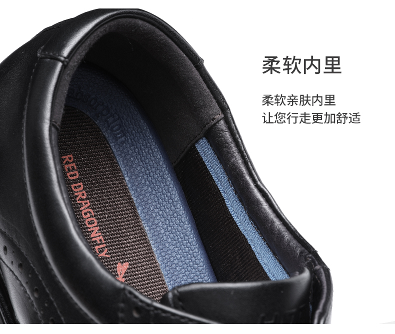 商品名称:红蜻蜓 休闲皮鞋男冬季新品英伦真皮布洛克男鞋真皮透气商务鞋