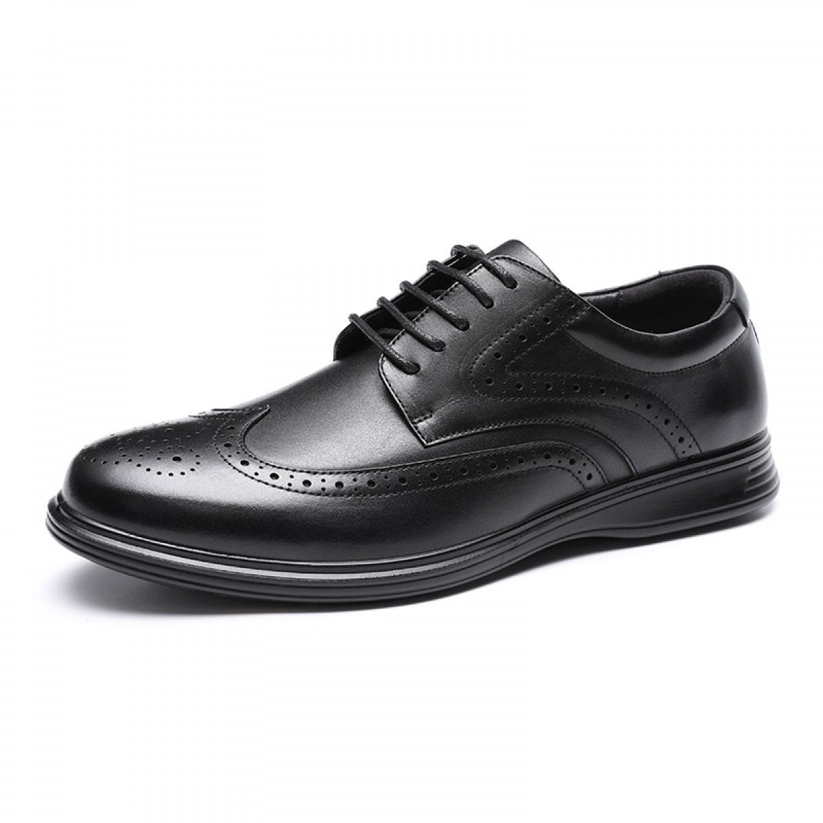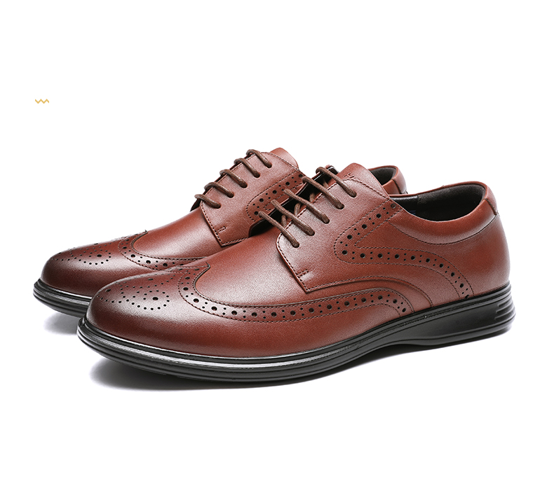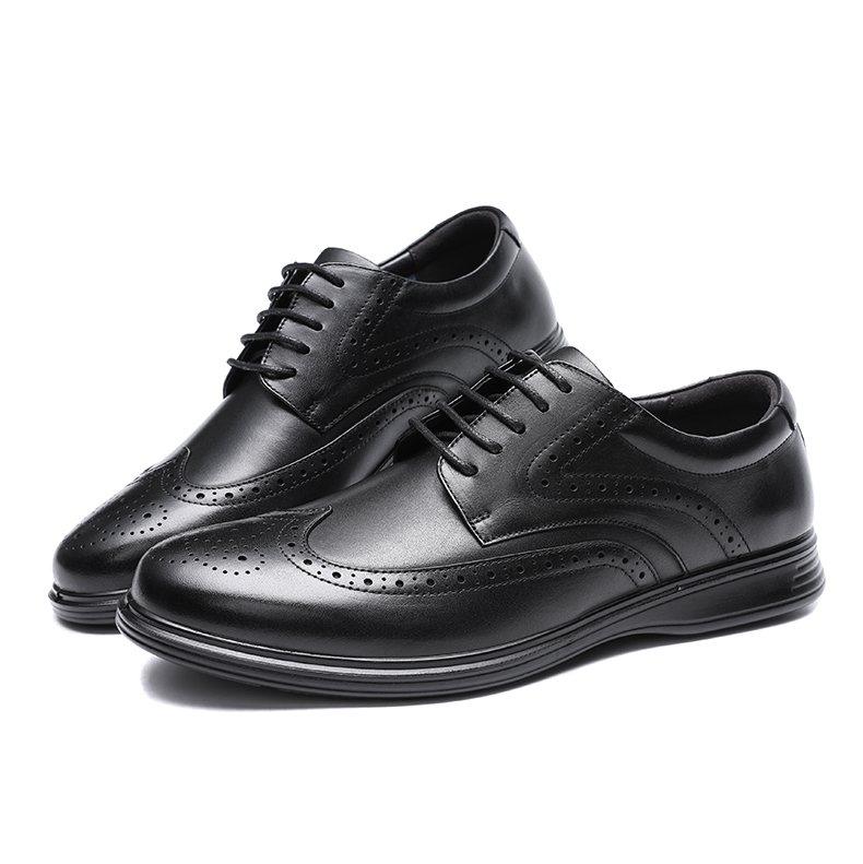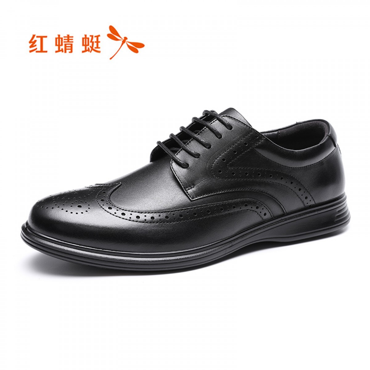 红蜻蜓 休闲皮鞋男冬季新品英伦真皮布洛克男鞋真皮透气商务鞋