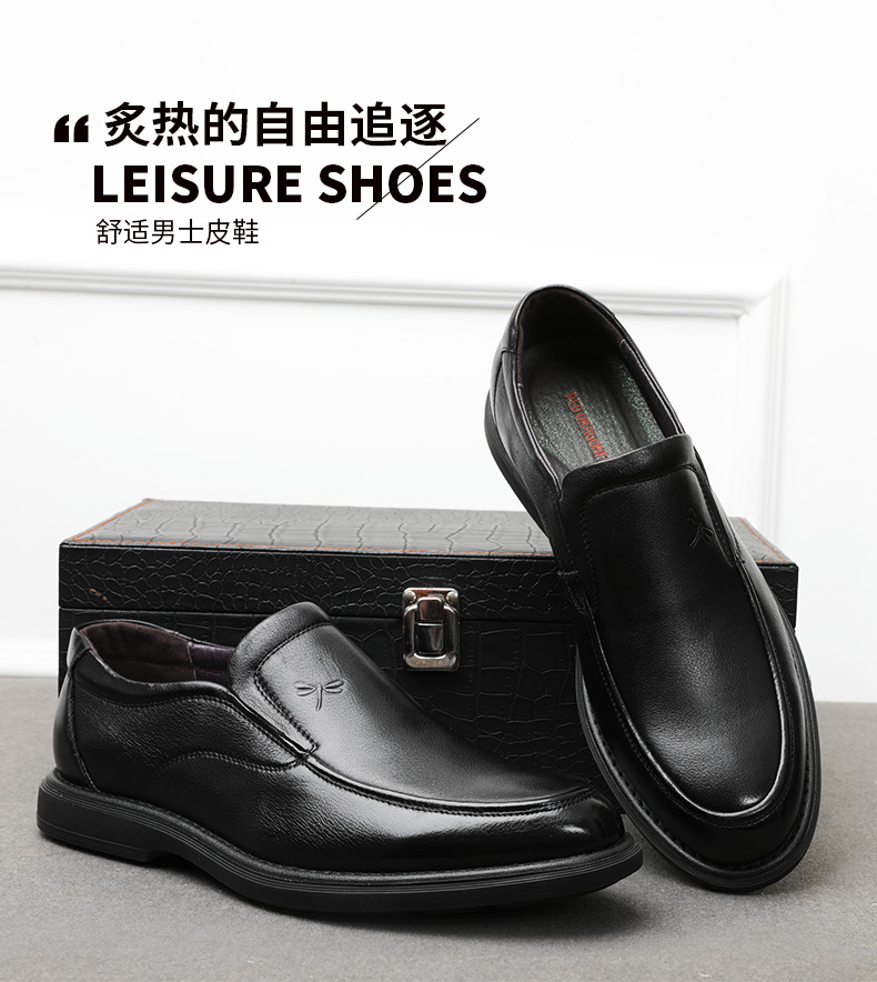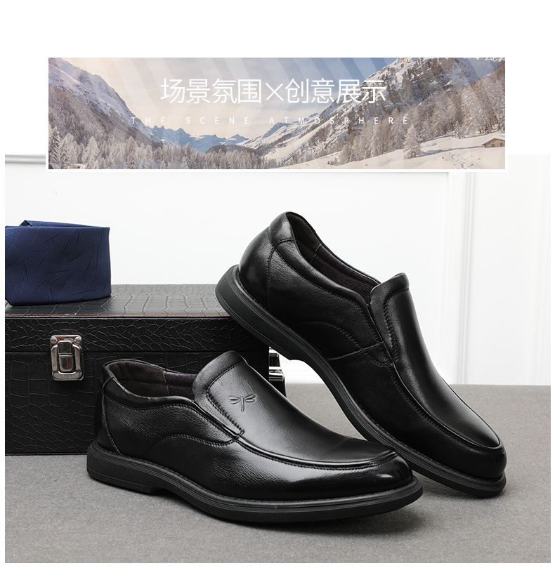 商品名称:红蜻蜓 男鞋冬季新款日常休闲皮鞋男套脚真皮一脚蹬懒人鞋