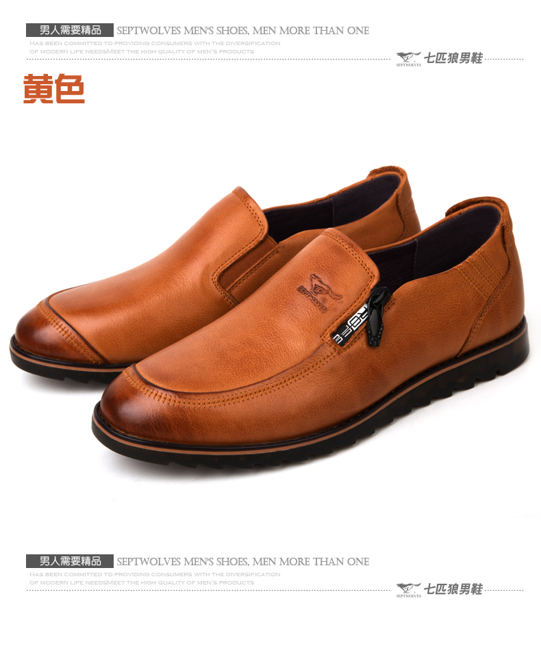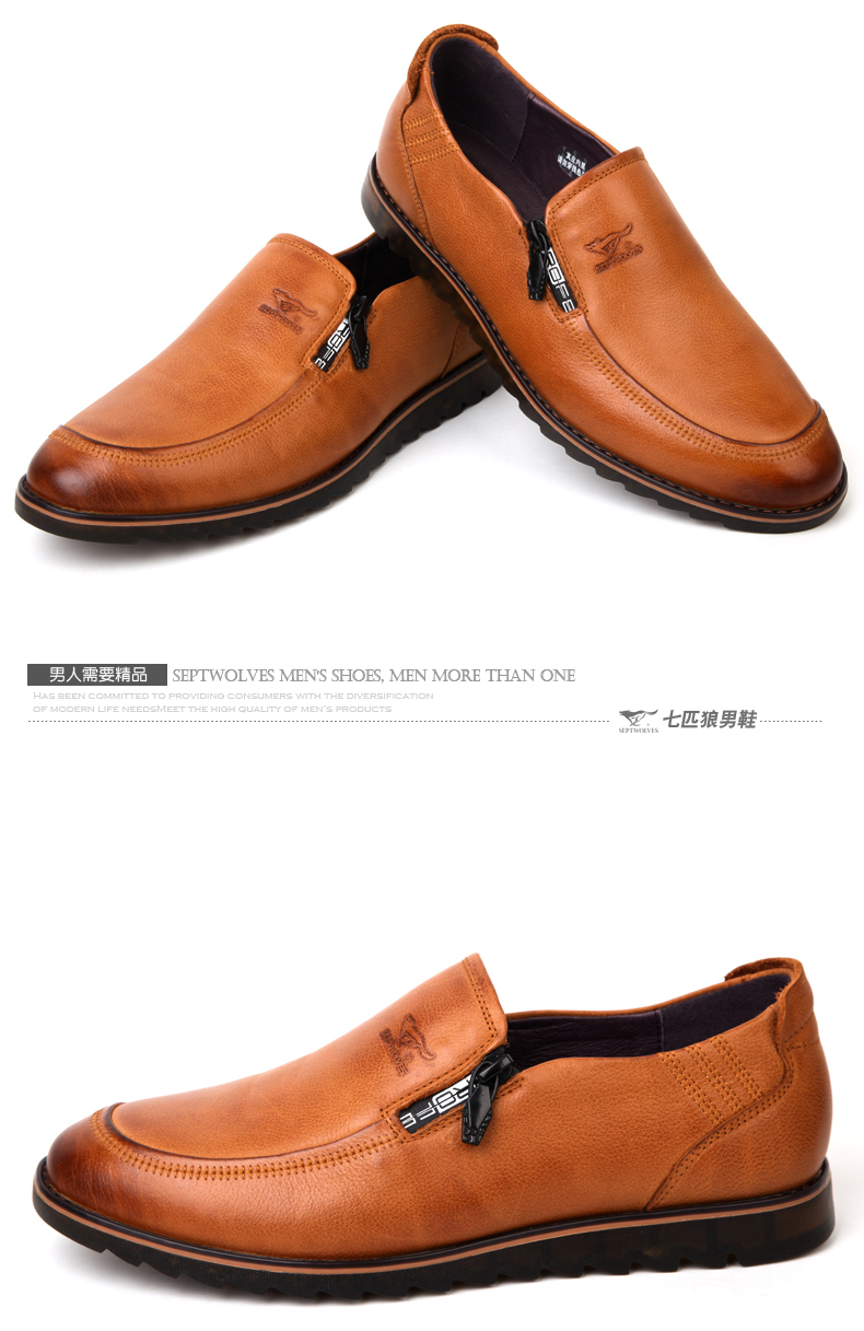 七匹狼 男鞋新款复古头层牛皮男士时尚休闲软底软面真皮皮鞋子