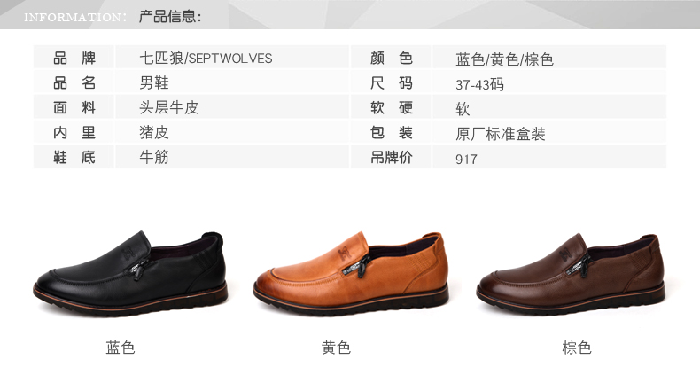 商品名称:七匹狼 男鞋新款复古头层牛皮男士时尚休闲软底软面真皮皮鞋子