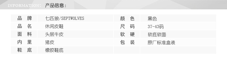 商品名称:七匹狼 男鞋新款休闲男士头层牛皮时尚耐磨边缘线缝男士皮鞋子