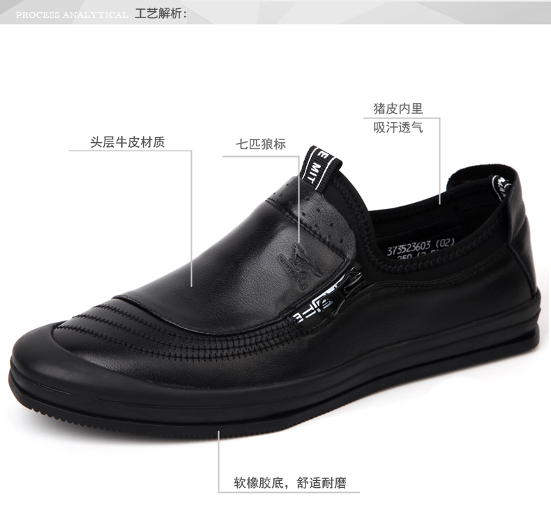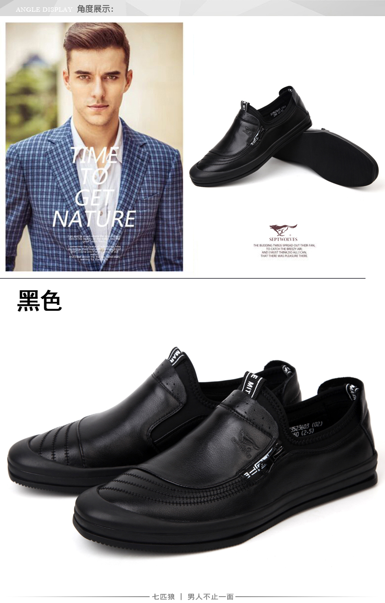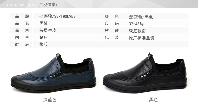 商品名称:七匹狼 男鞋新款头层牛皮男士时尚春秋休闲套脚真皮皮鞋子