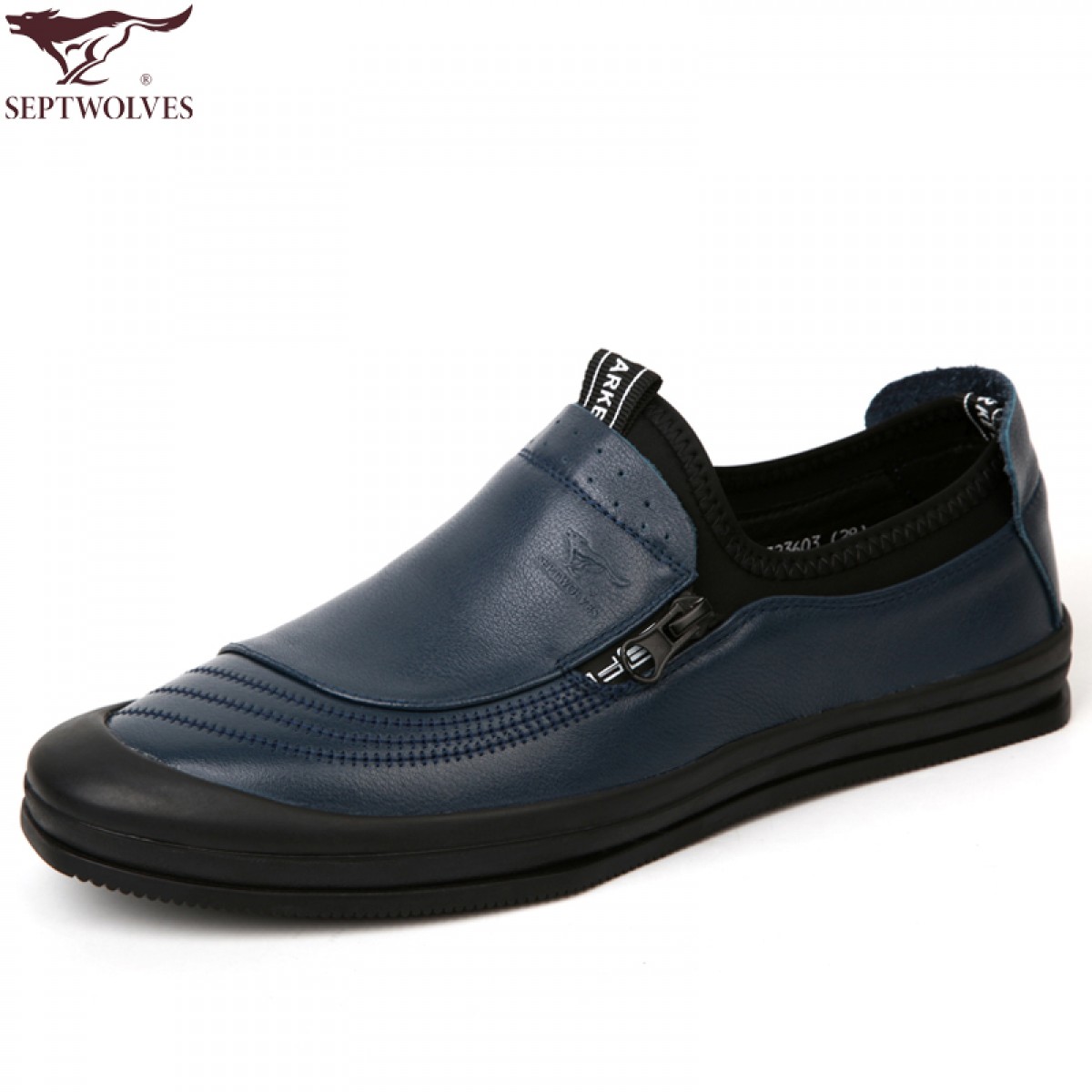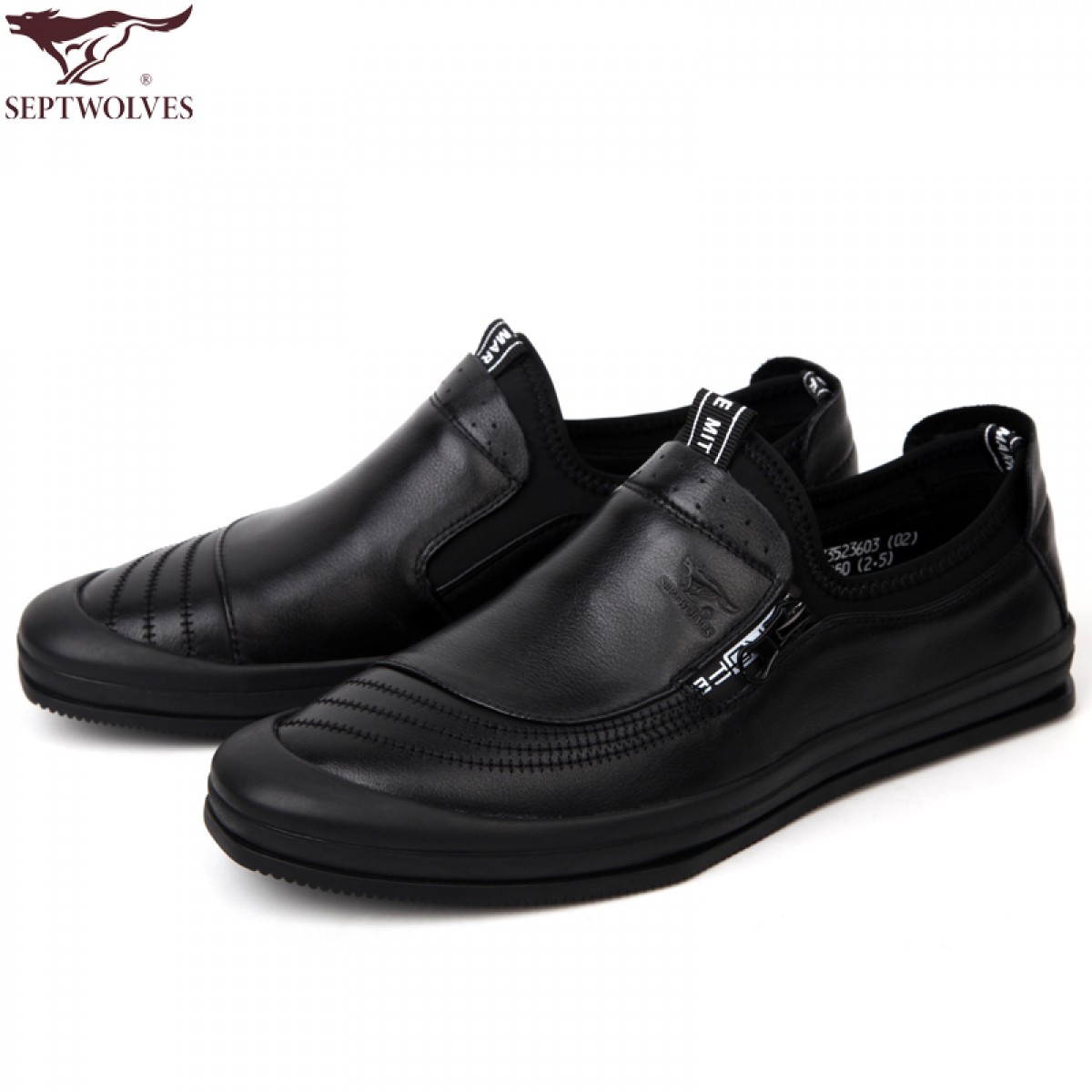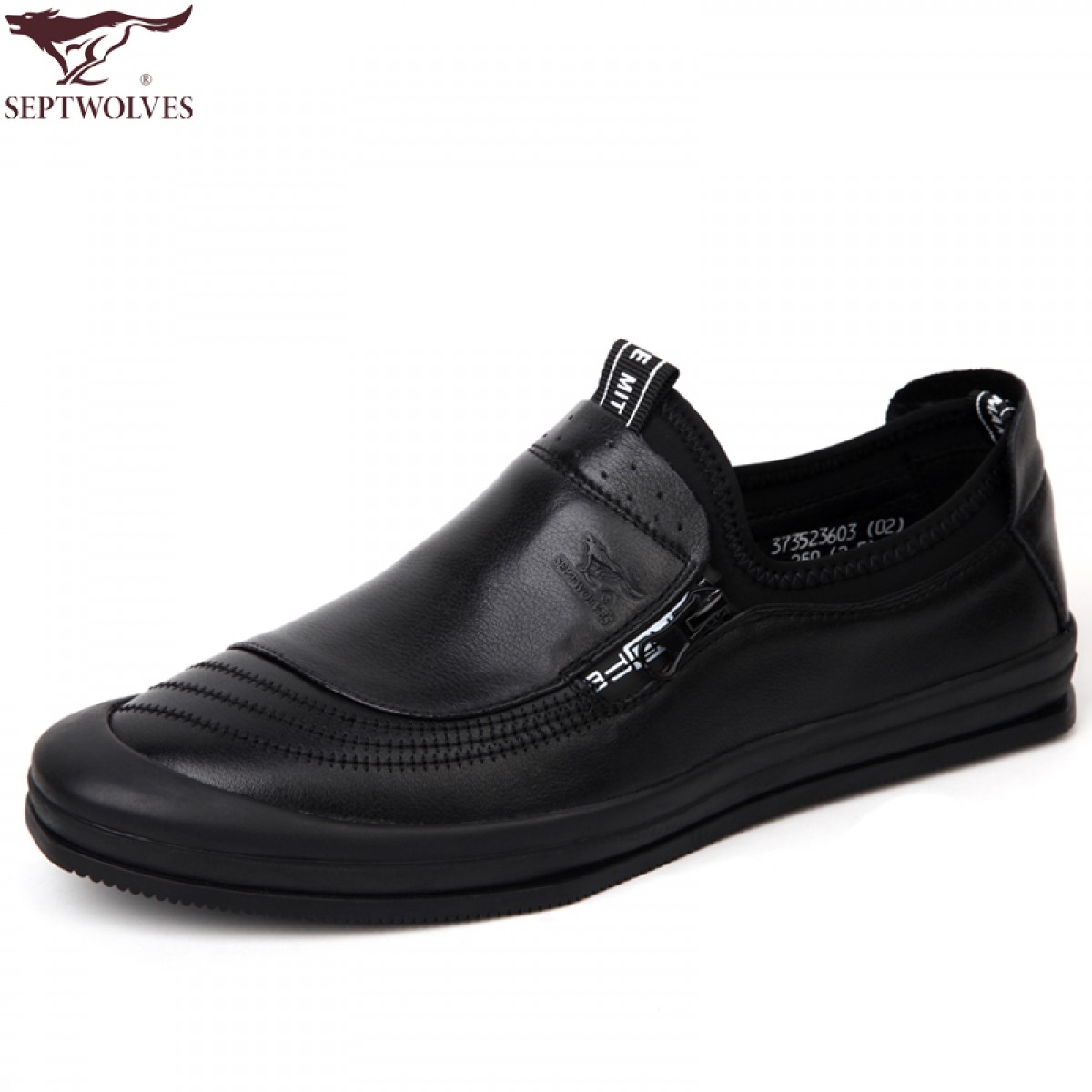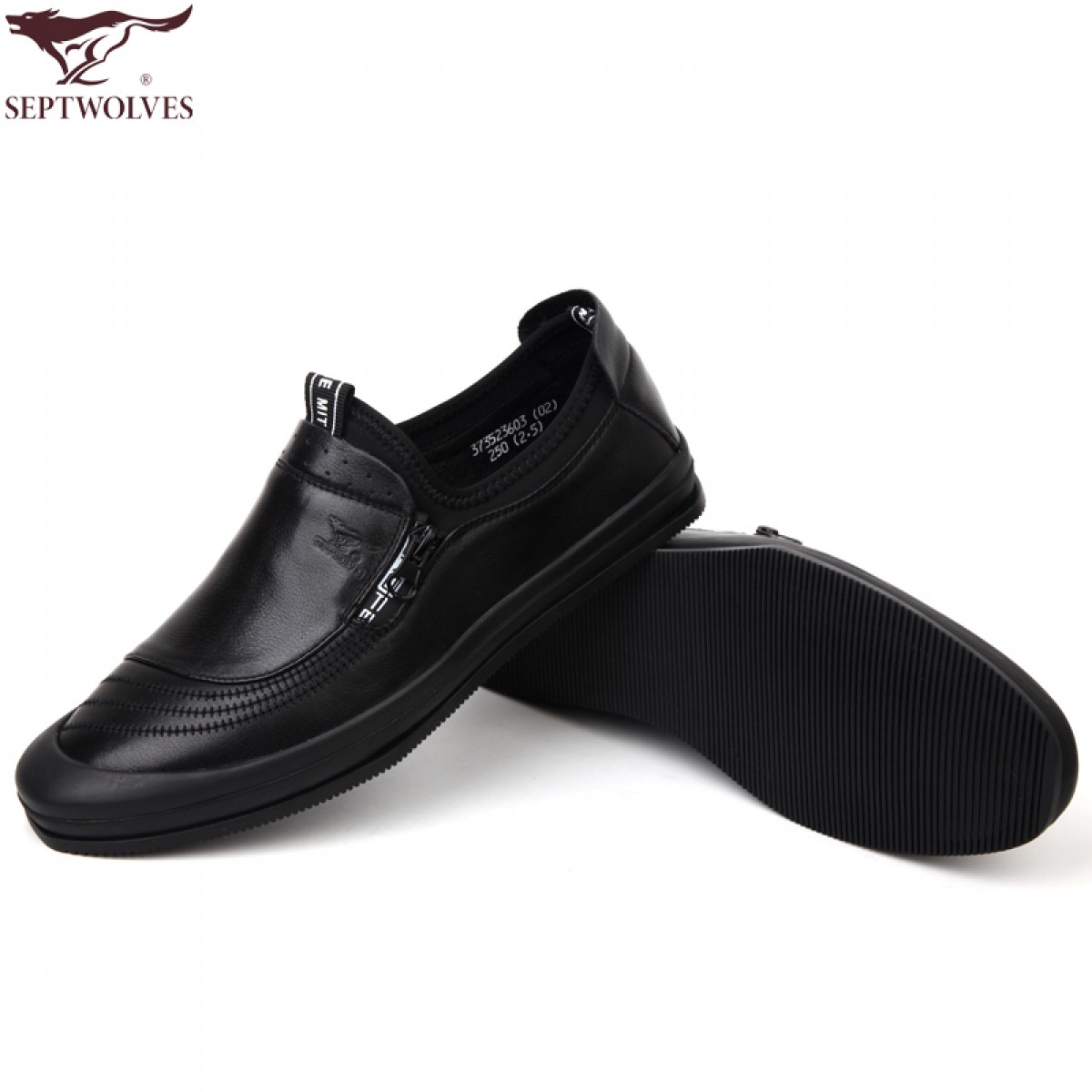七匹狼 男鞋新款头层牛皮男士时尚春秋休闲套脚真皮皮鞋子