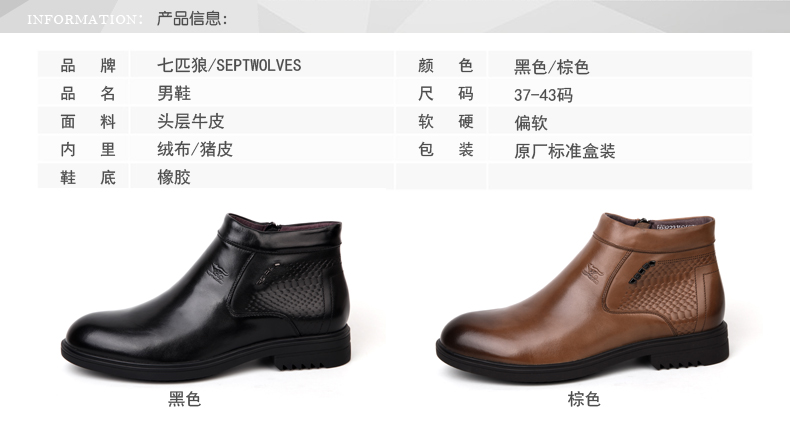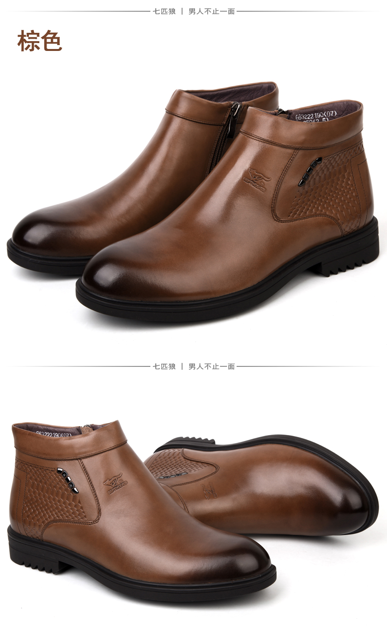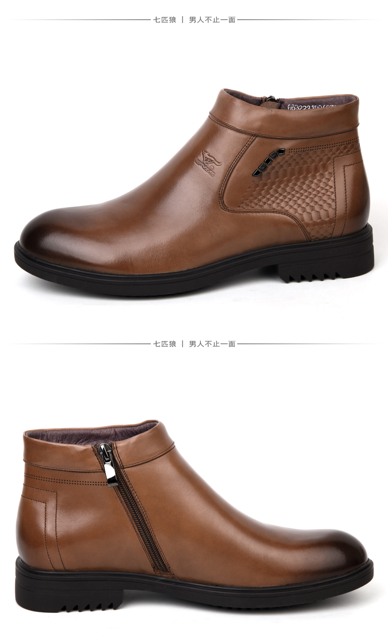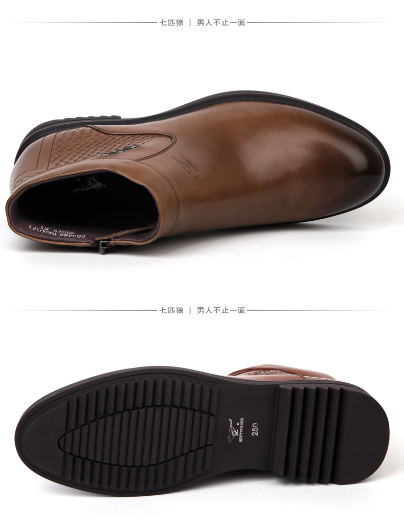 商品名称:七匹狼 男鞋新款头层牛皮男士高帮拉链商务正装真皮皮鞋子