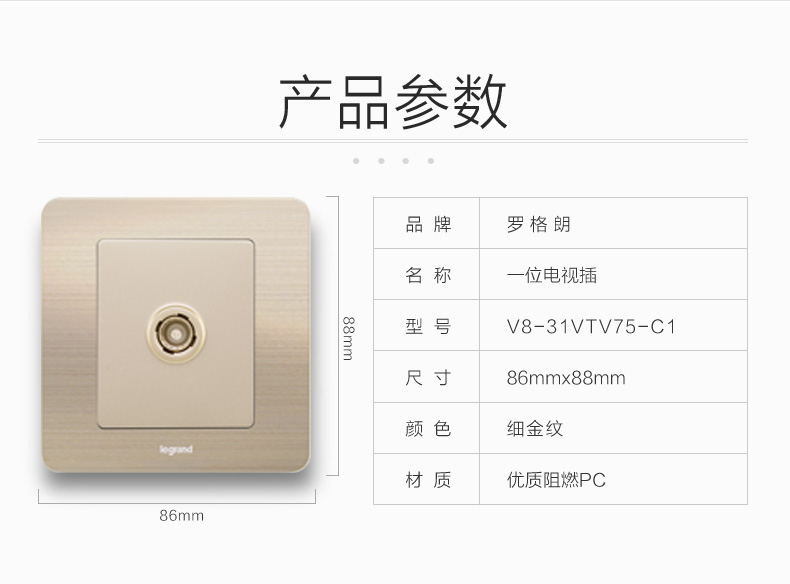 商品名称:罗格朗 开关插座面板细金纹有线电视插座面板 闭路电视插座面板