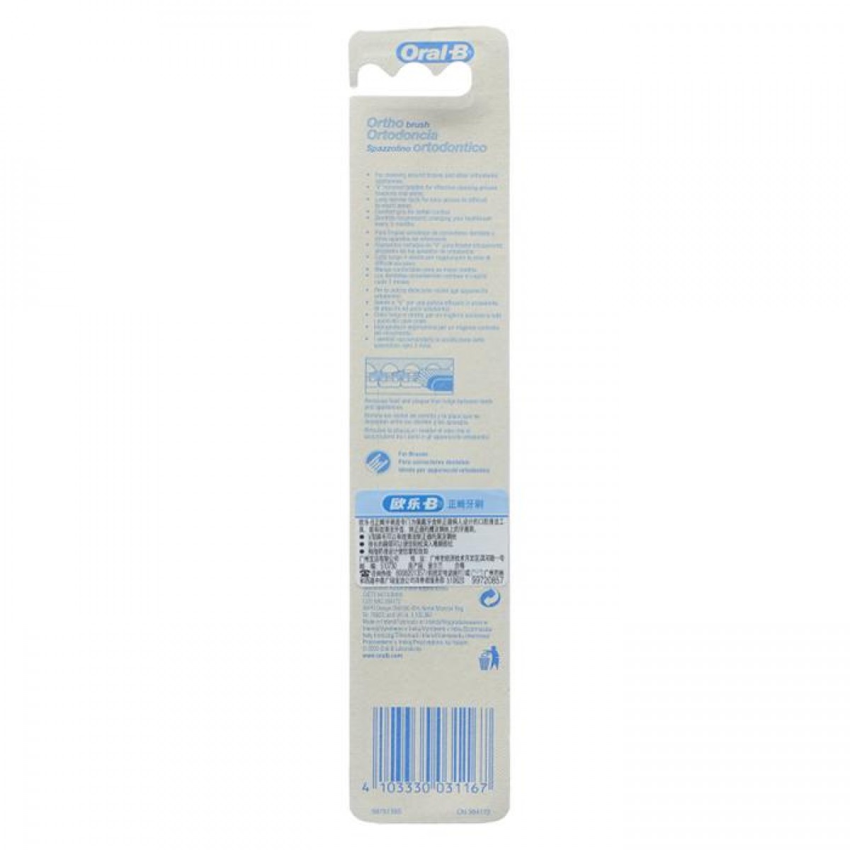 产品说明:正畸牙刷是专门为佩带牙齿矫正器病人设计地口腔清洁工具,能有效清洁牙齿、矫正器托槽及钢丝上的牙菌斑。V型刷毛可以有效清洁矫正器托架及钢丝,狭长的刷颈可以使您轻松深入难刷部位,拇指防滑条设计使您掌控自如。