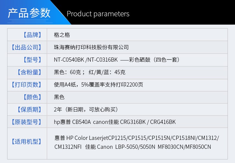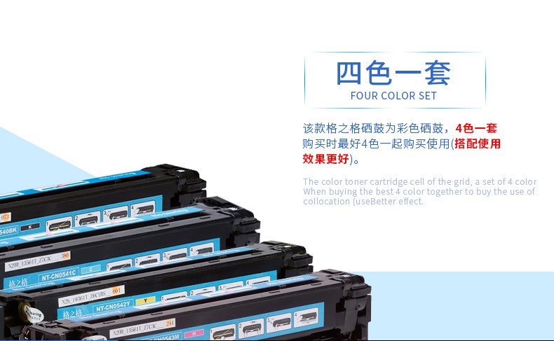 商品名称:格之格 四色套装 CB540A 适用 HP1215硒鼓 CP1215 佳能MF8030CN 8050CN墨盒
