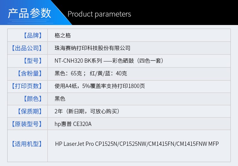 商品名称:格之格 CNH320 硒鼓适用惠普 HP128A CP1525N CP1525NW CM1414FN 墨粉盒