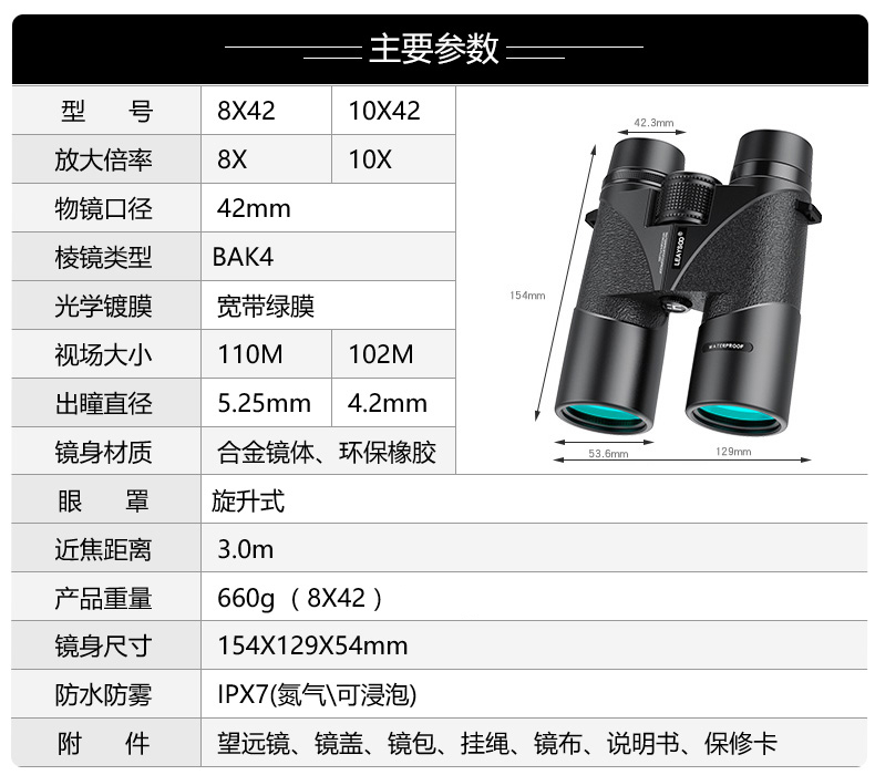 商品名称:雷龙 微光夜视 氮气防水 双筒高清高倍望远镜户外演唱会
