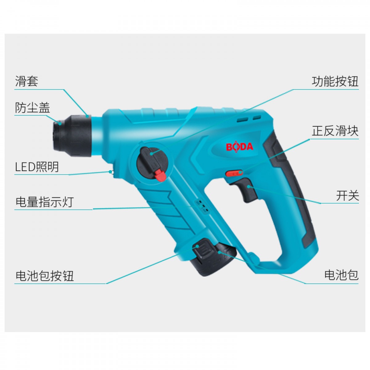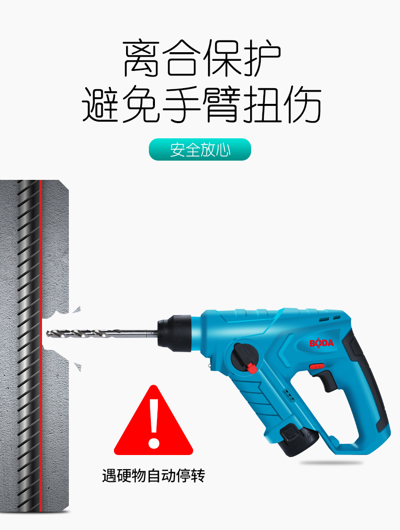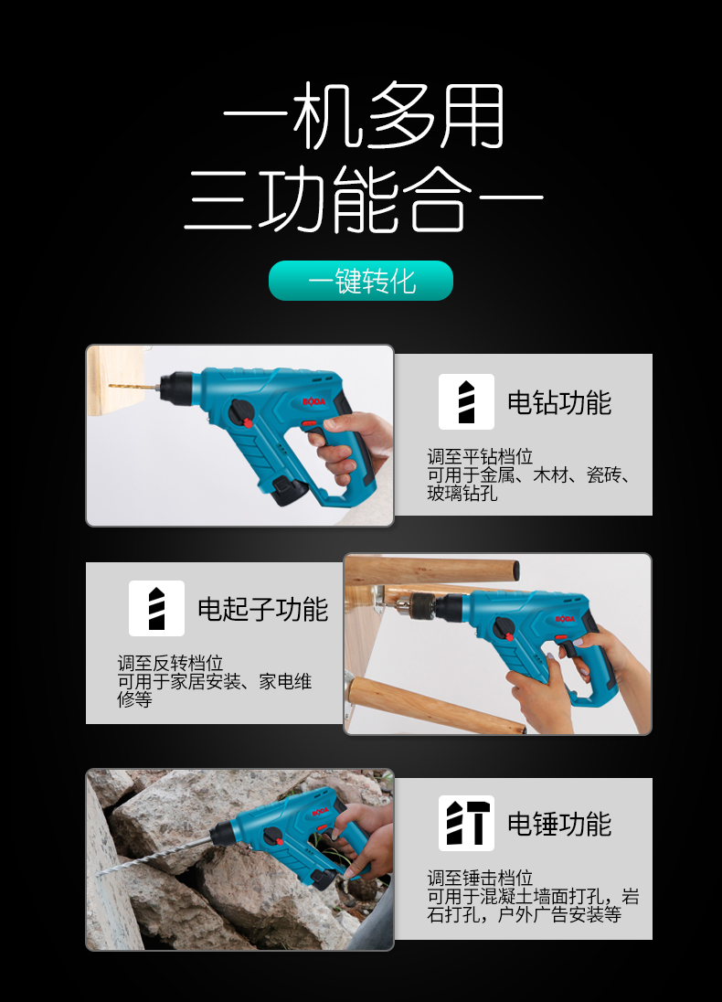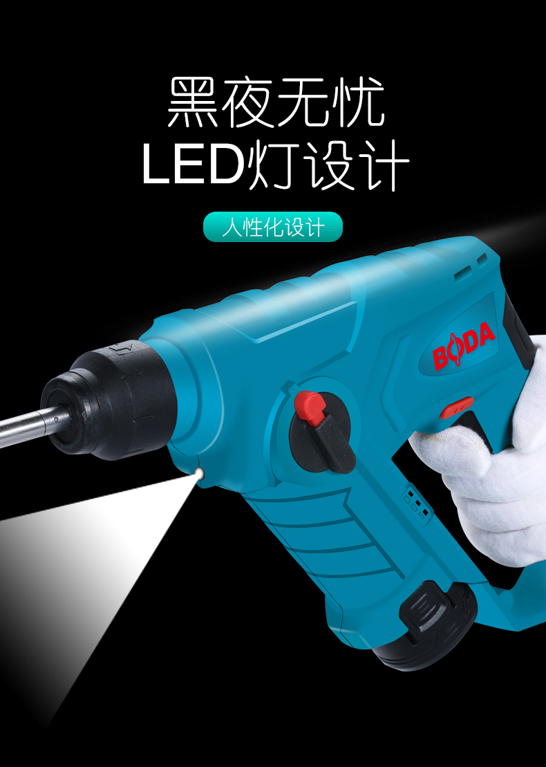 商品名称:博大 充电小锂电锤电钻家用多功能无线锂电轻锤冲击钻打混凝土装修 H1201-10