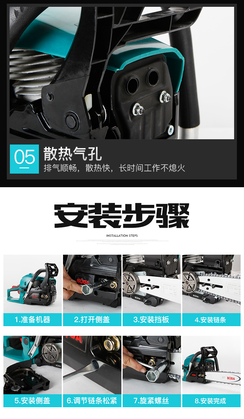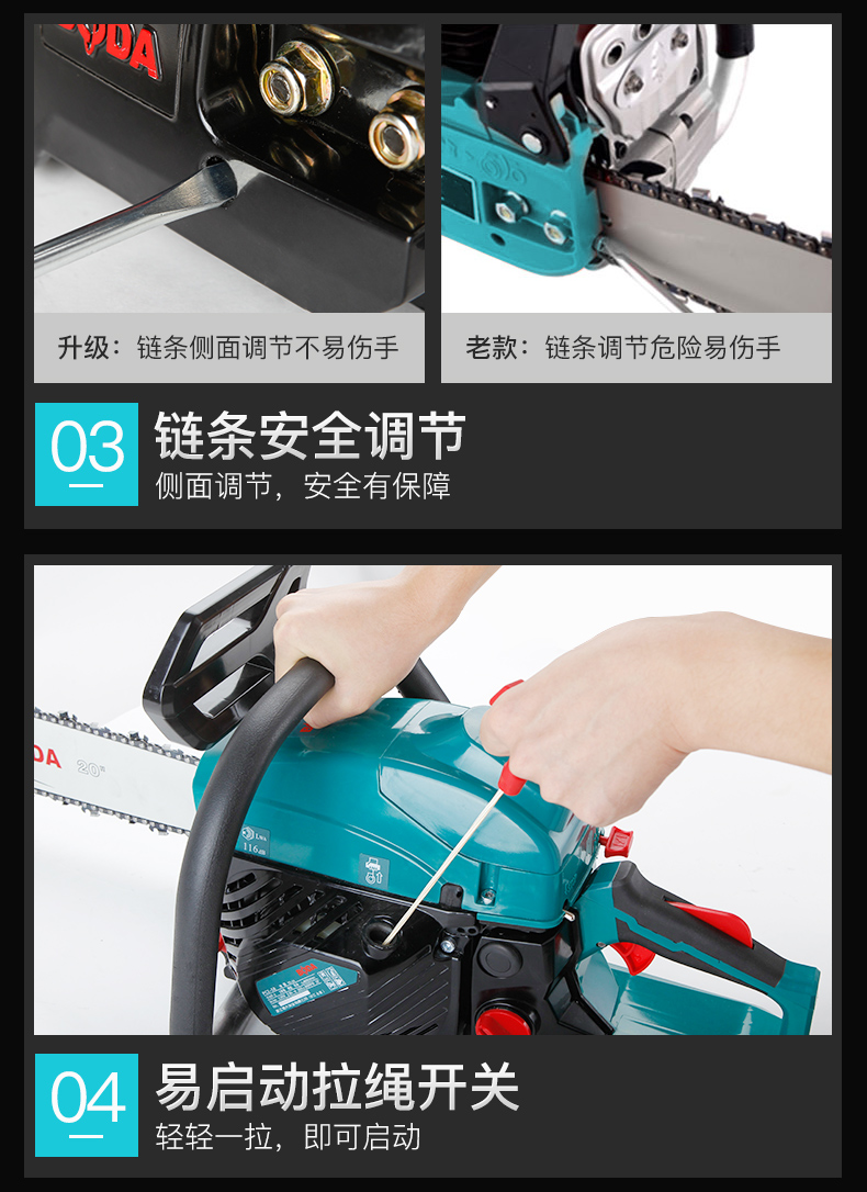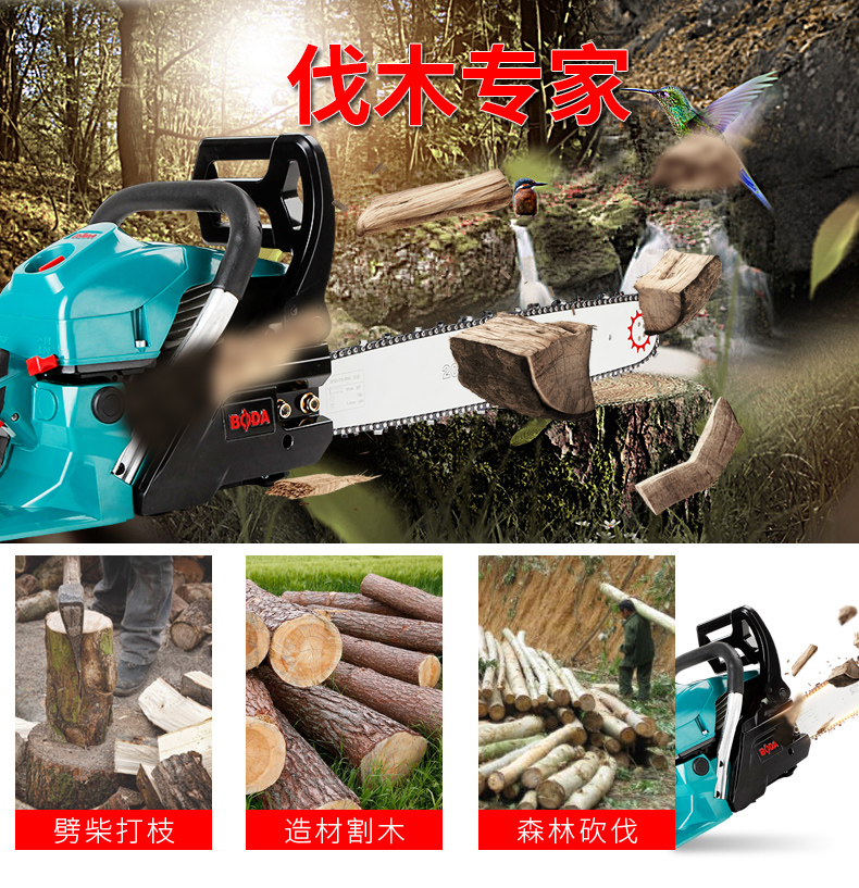 商品名称:博大 汽油锯大功率园林锯家用伐木锯链条锯砍树锯多功能汽油电锯 PC1-58