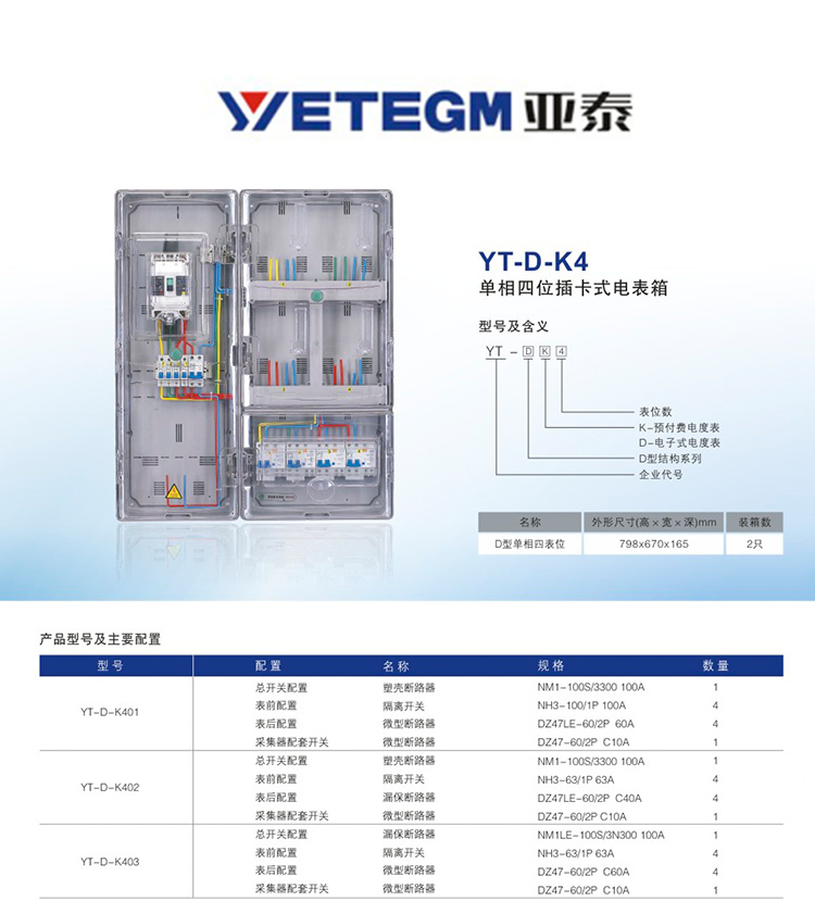 商品名称:和讯自有产品 单相四位插卡式电表箱 YT-D-K403