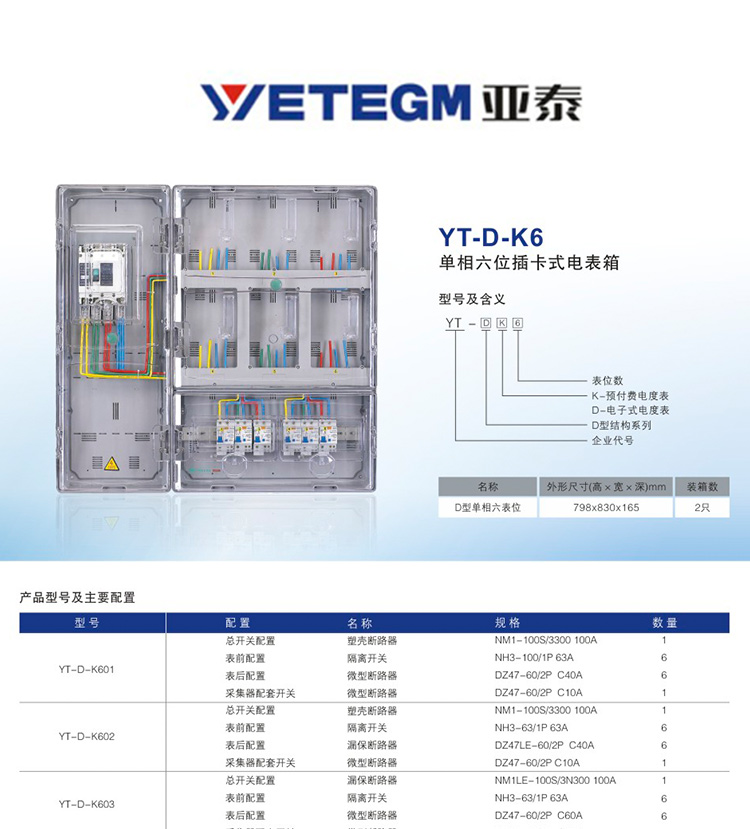 商品名称:和讯自有产品 单相六位插卡式电表箱 YT-D-K601