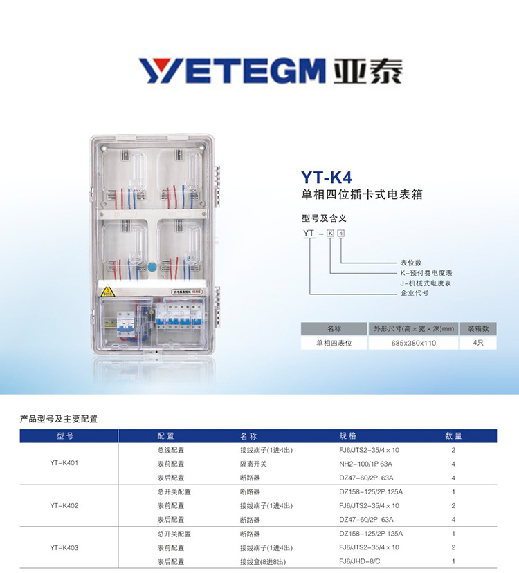 和讯自有产品 单相四位插卡式电表箱 YT-K403
