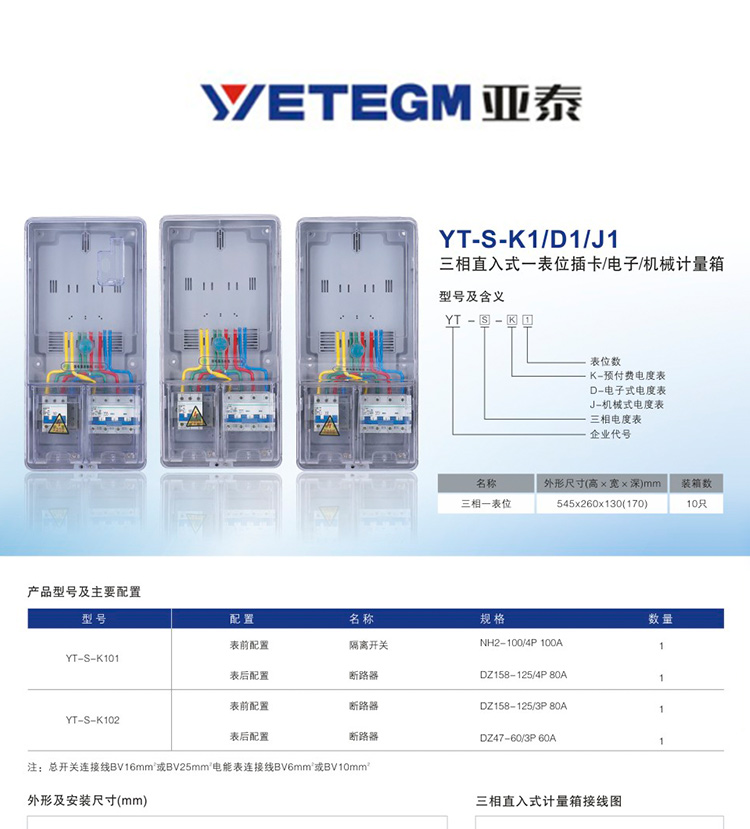 商品名称:和讯自有产品 三相直入式一表位插卡 电子 机械计量箱 YT-S-K1-D1-J1 K101