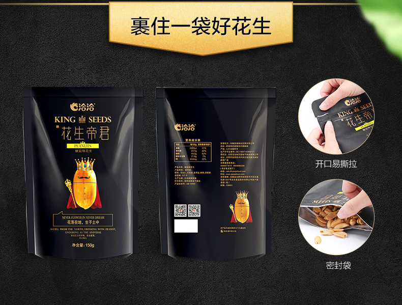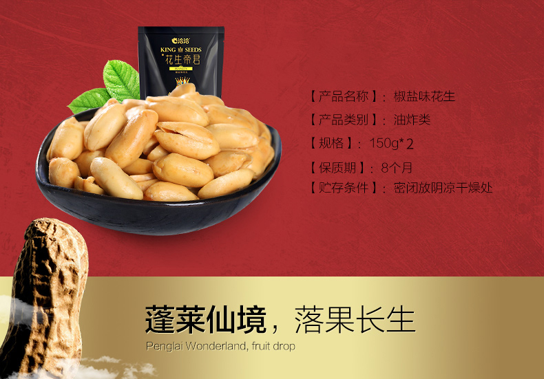 商品名称:洽洽 花生帝君椒盐花生米坚果恰恰休闲零食开袋即食下酒菜150g*2袋