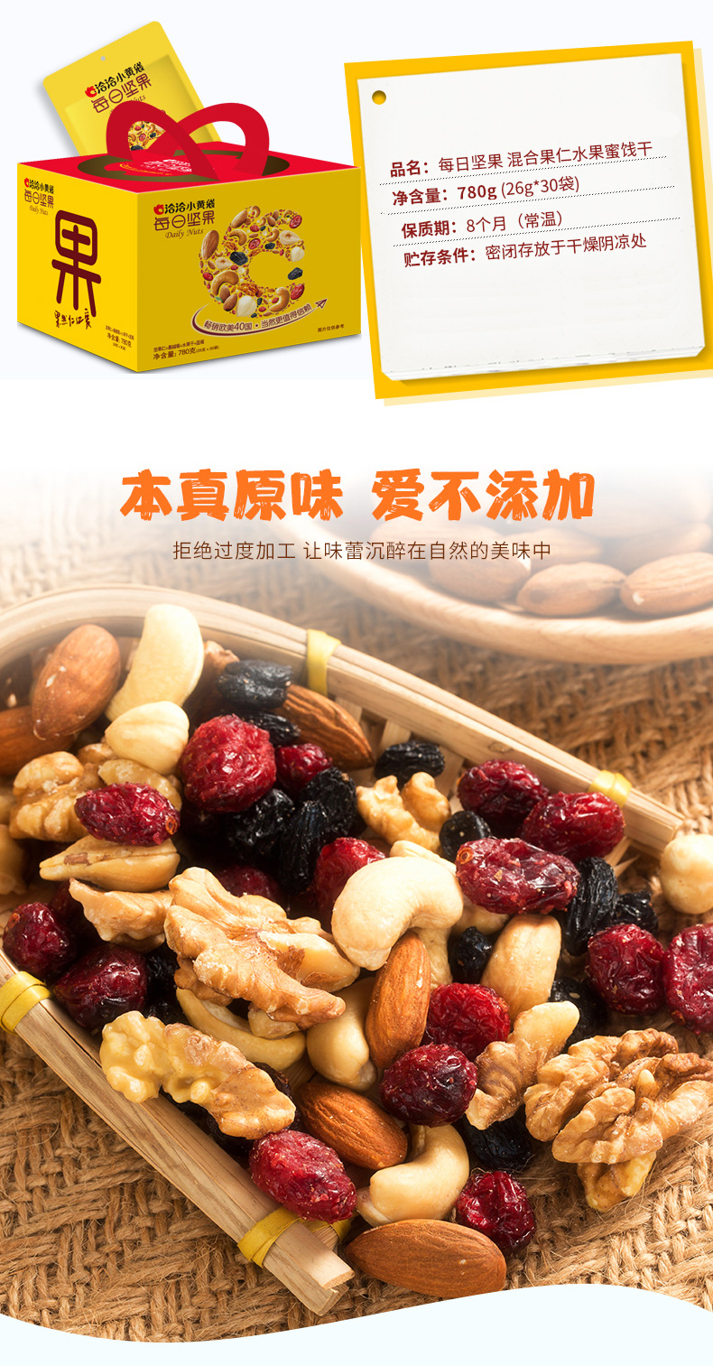 商品名称:洽洽 每日坚果恰恰混合坚果30包混合果仁果干孕妇零食大礼包780g