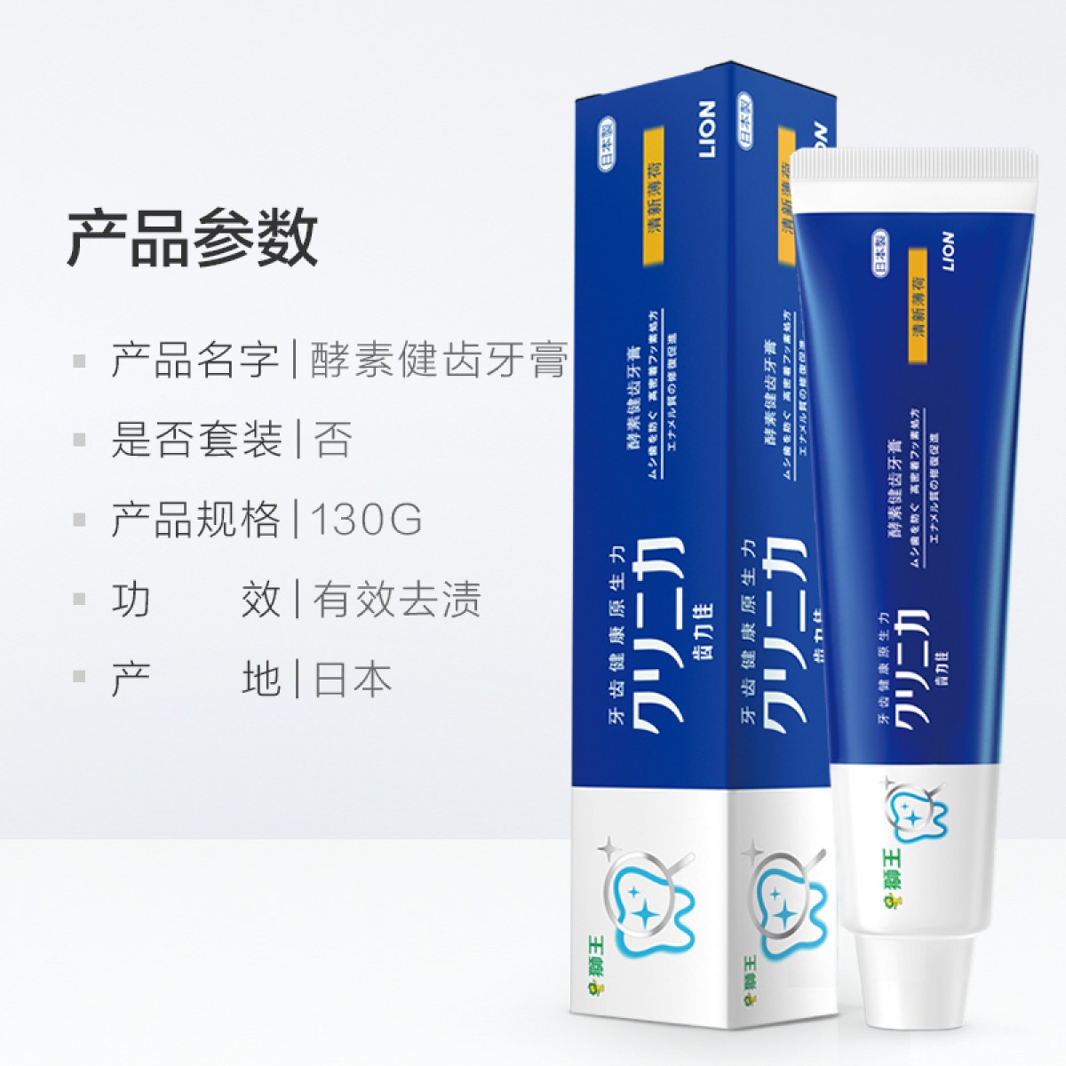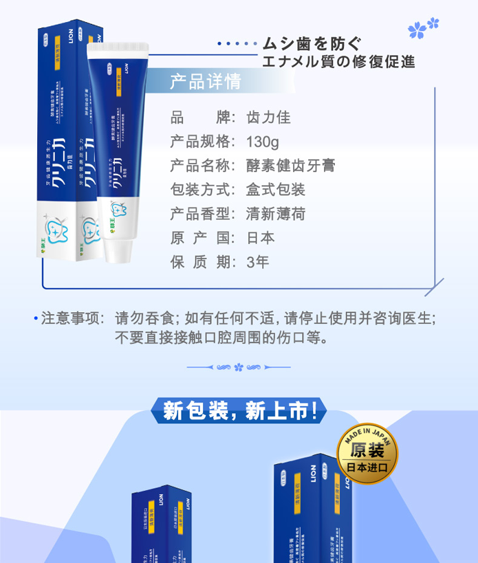 商品名称:LION/狮王 齿力佳酵素健齿牙膏130g 防蛀清新美白